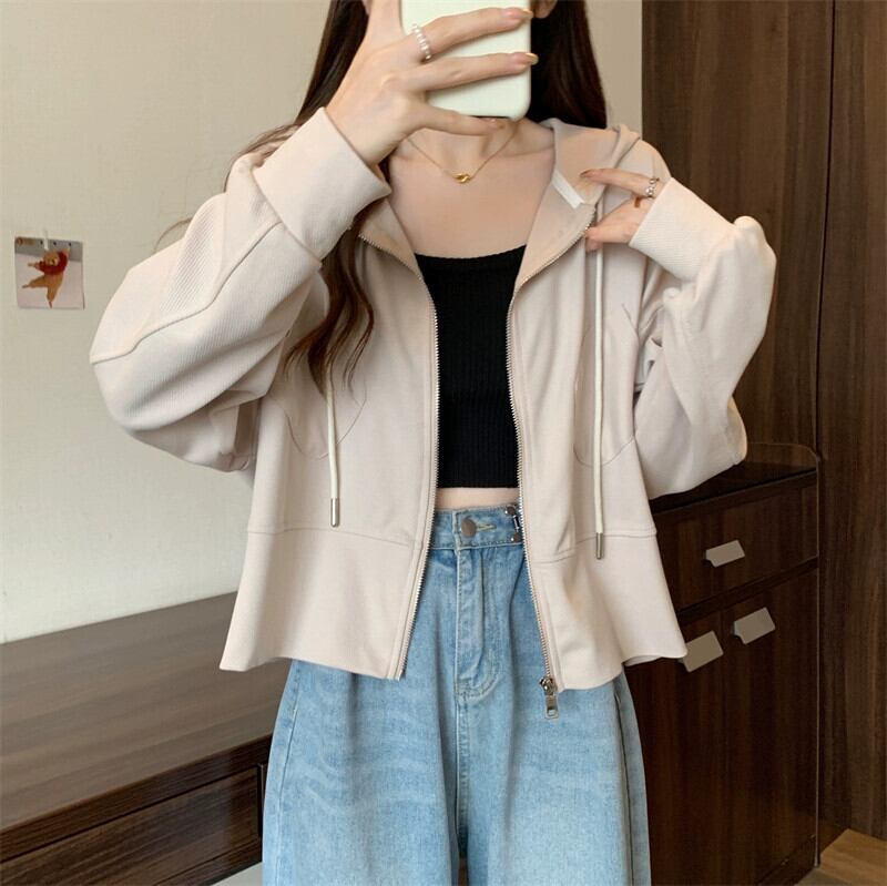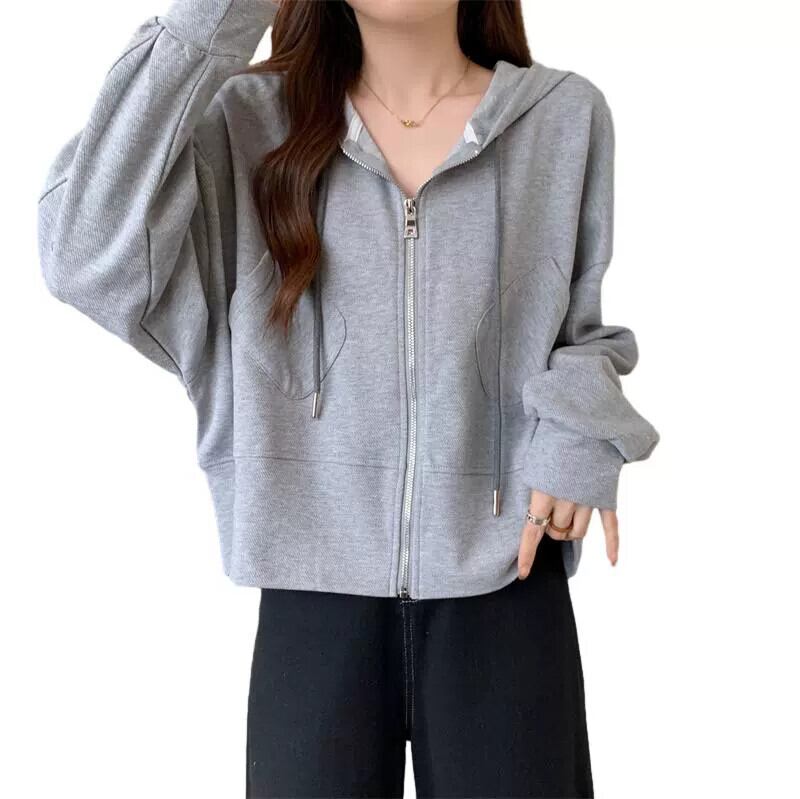プラスサイズの婦人服 2023 ファットシスター秋服新デザインジッパーフード付きカーディガントレーナージャケットルーズトップ 大きめサイズ オータム 秋物 888417377824612