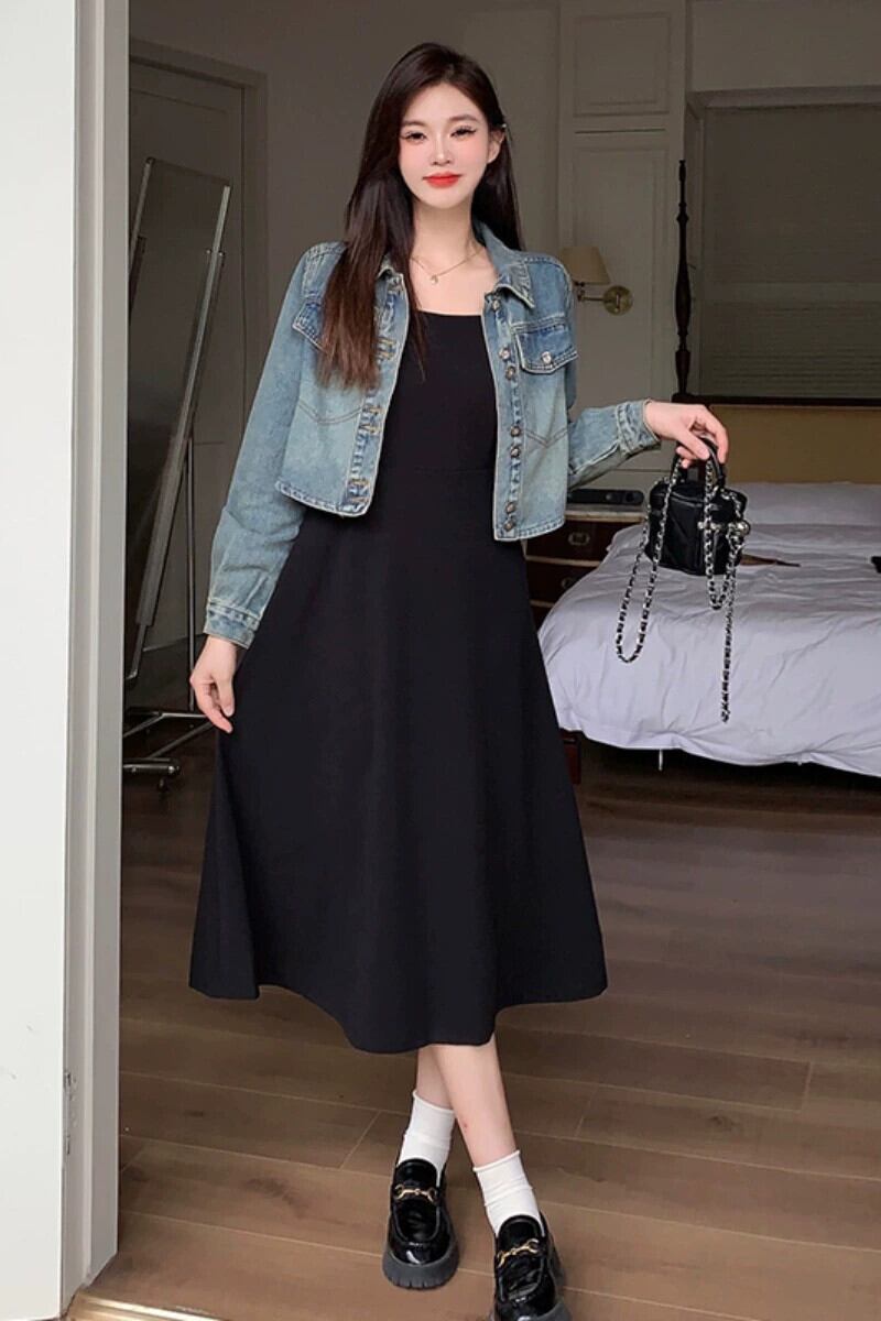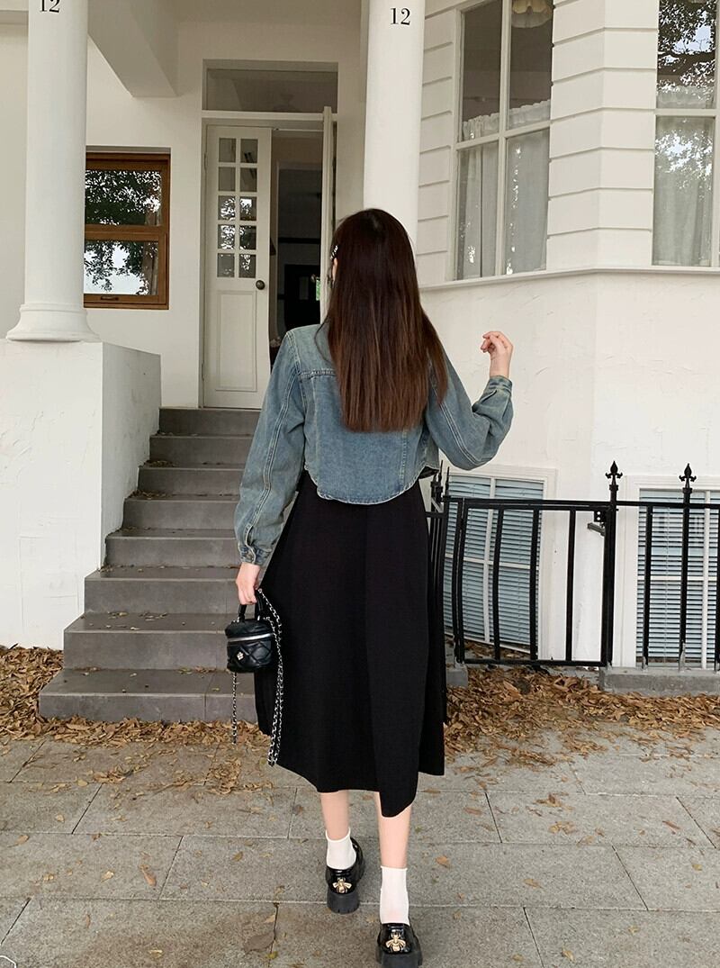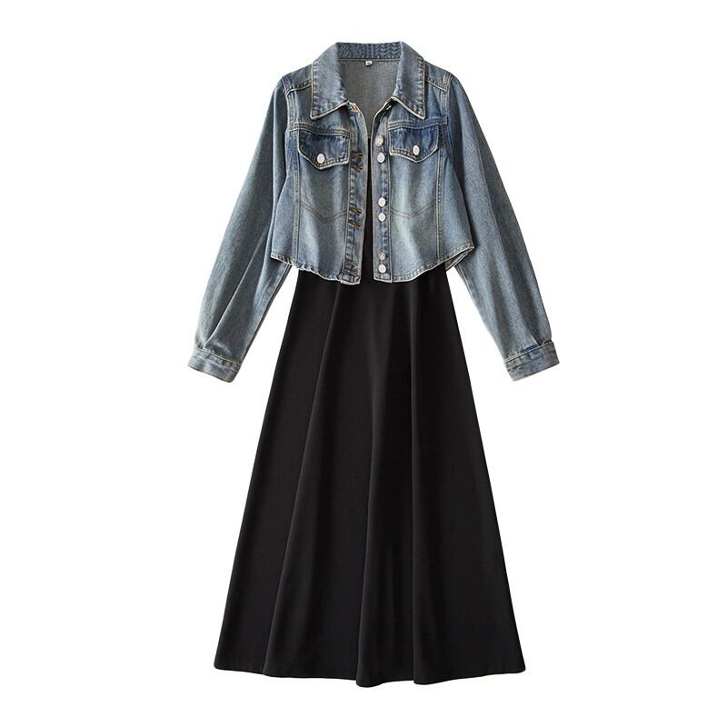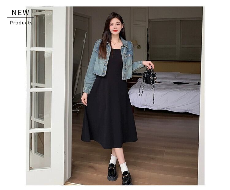 プラスサイズの婦人服 2023 流行の秋の新脂肪姉妹スタイルのファッションスーツデニムジャケットサスペンダースカートツーピーススーツ 大きめサイズ オータム 秋物 8884140663840576