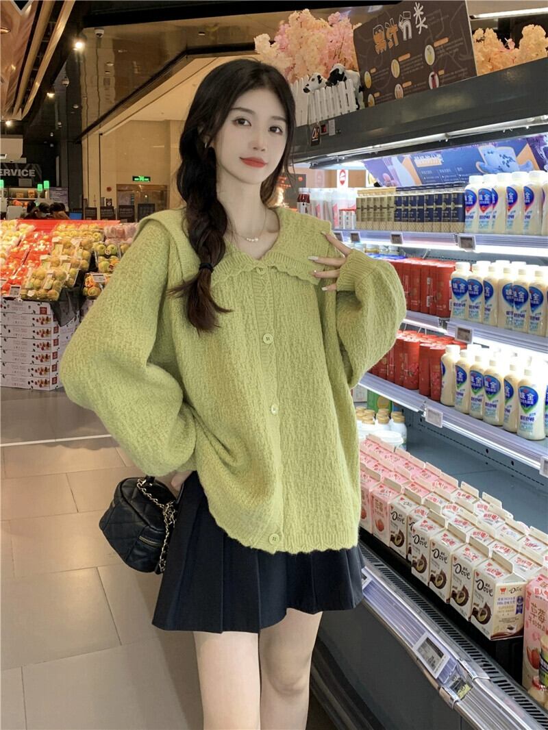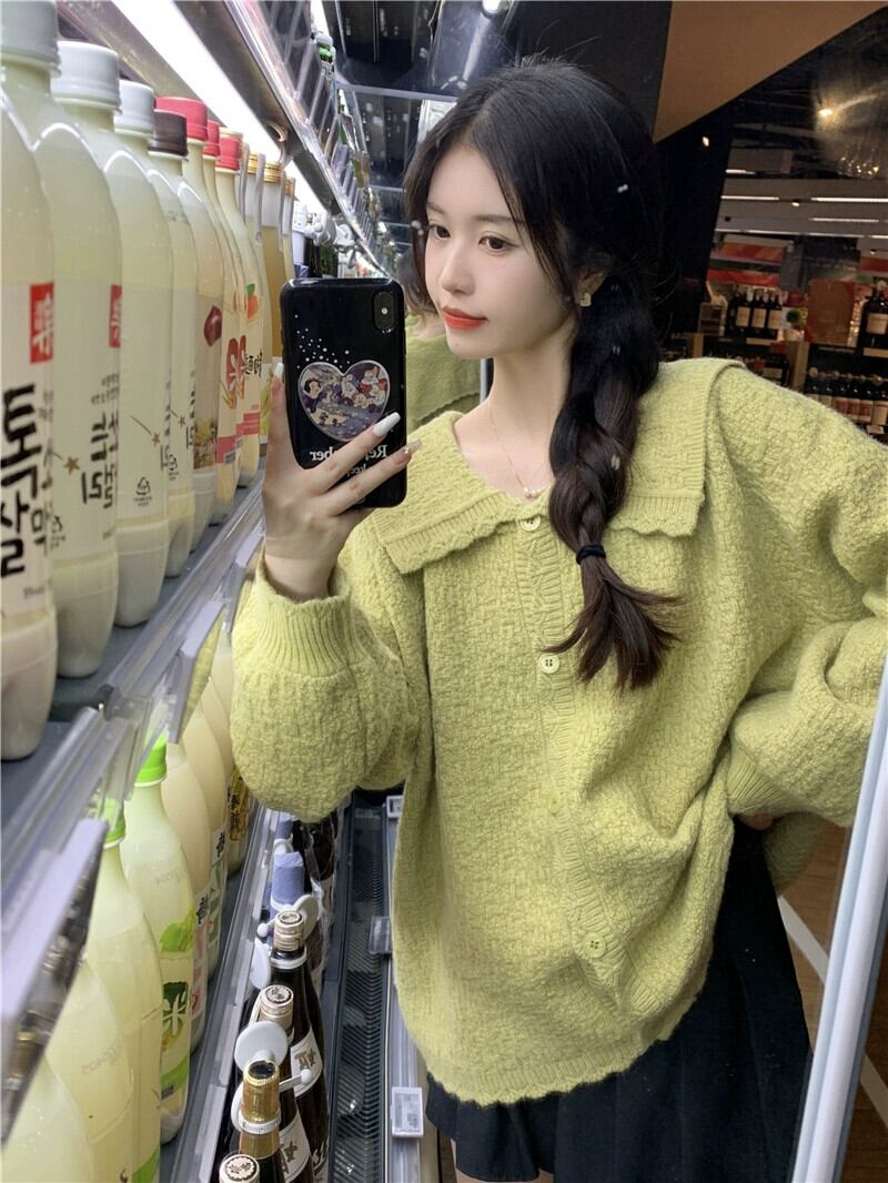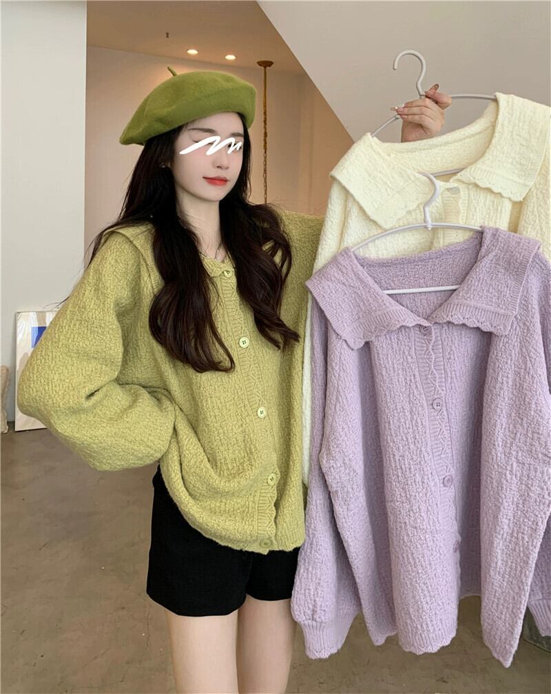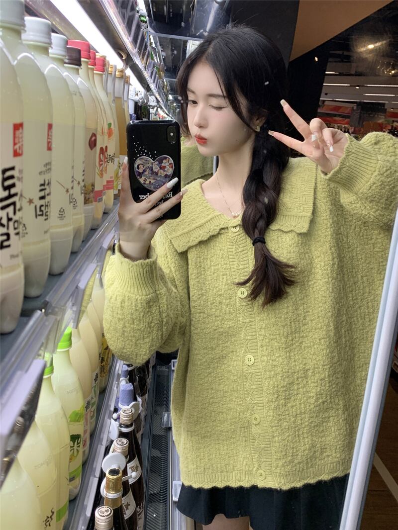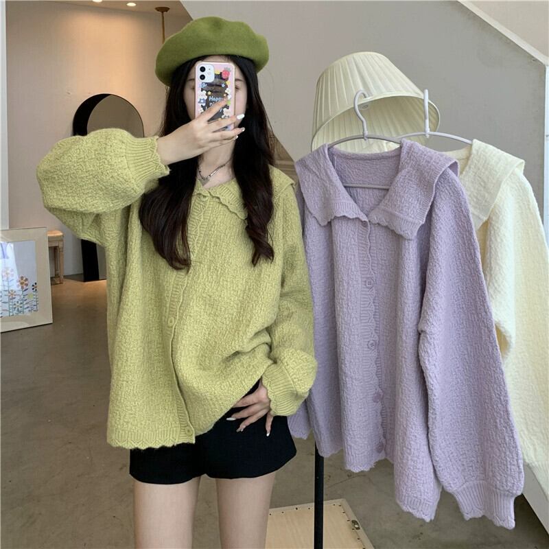 プラスサイズの婦人服 2023 脂肪姉妹秋服新しいフレンチカーディガンセータールーズシンプルなラペルコートセーター 大きめサイズ オータム 秋物 8884180992866958