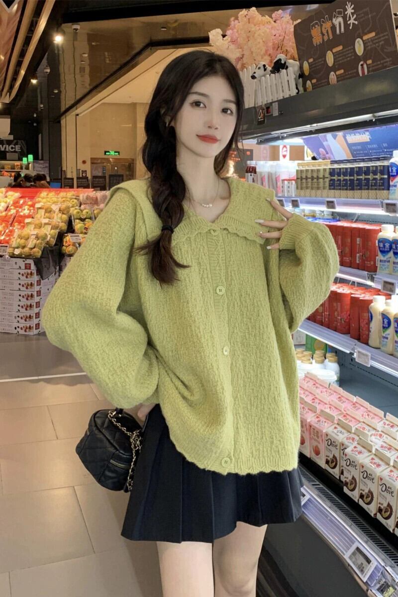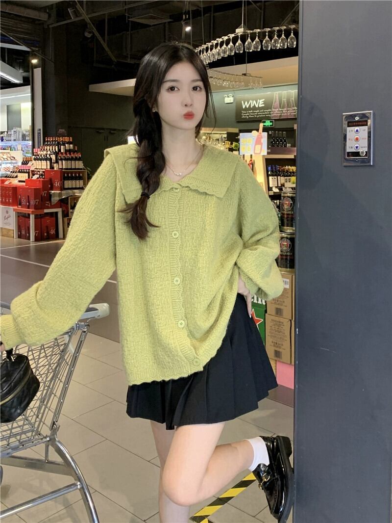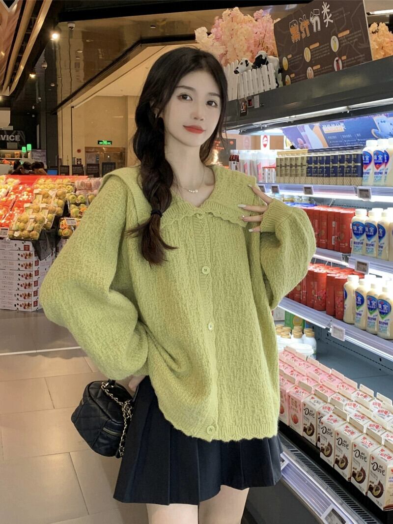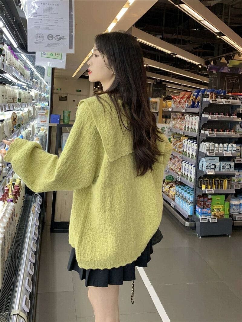 プラスサイズの婦人服 2023 脂肪姉妹秋服新しいフレンチカーディガンセータールーズシンプルなラペルコートセーター 大きめサイズ オータム 秋物 8884180992866958