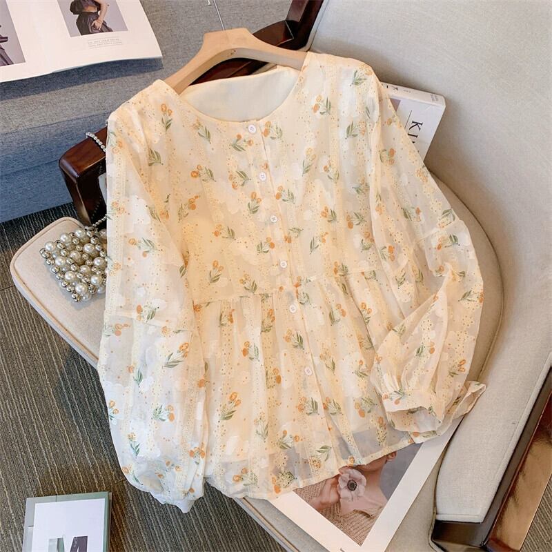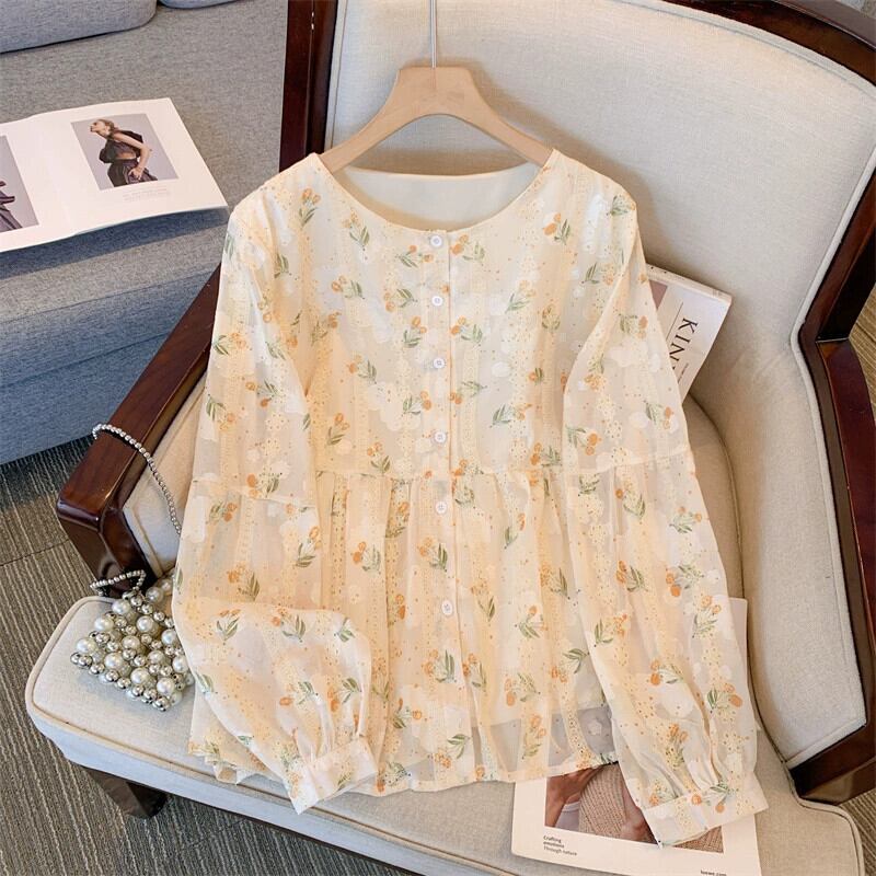プラスサイズの婦人服 2023 流行の秋の新しい脂肪姉妹小さな新鮮な長袖レースシャツカジュアル多目的ファッショントップ ロング 大きめサイズ オータム 秋物 8884177403164886