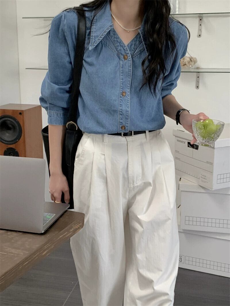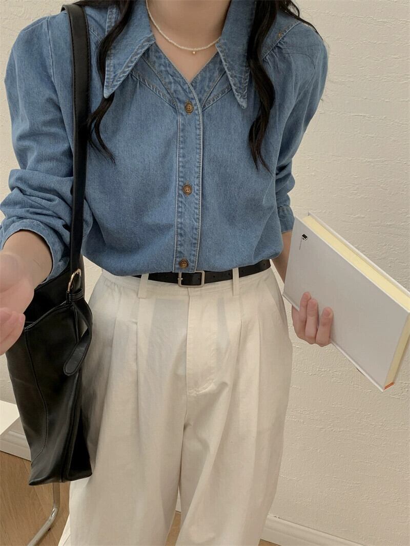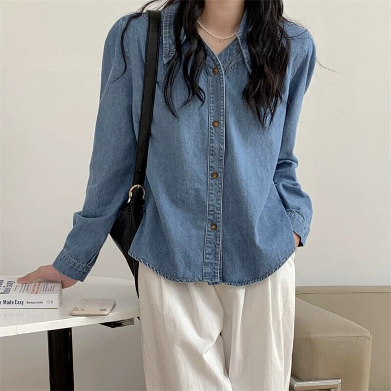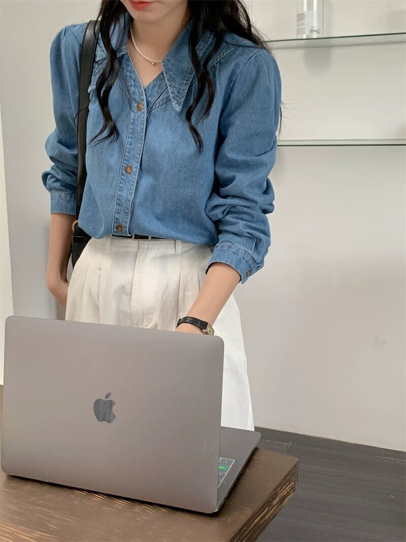 プラスサイズの婦人服 2023 ファットシスター秋の新デニムシャツジャケット長袖ルーズレトロカジュアルカーディガントップ ロング 大きめサイズ オータム 秋物 8884119757670063