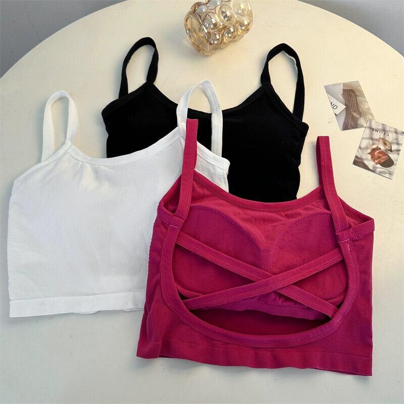 胸パッド付き大きいサイズぽっちゃりmmキャミソール、レディースインナー、スイートタイチューブトップ、夏アウター、ショートクロスバックトップ 大きめサイズ 大人ガーリー スウィート キュート カジュアル サマー 夏物 8884153857285029