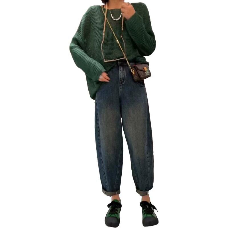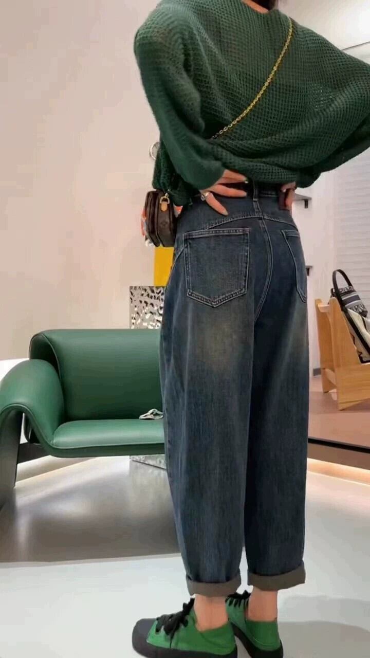 プラスサイズの婦人服 2023 脂肪姉妹秋の新ファッションハイウエストワイドレッグストレートお父さんパンツルーズハーレムジーンズ ハイウェスト 大きめサイズ オータム 秋物 ワイドパンツ 8884119020010584