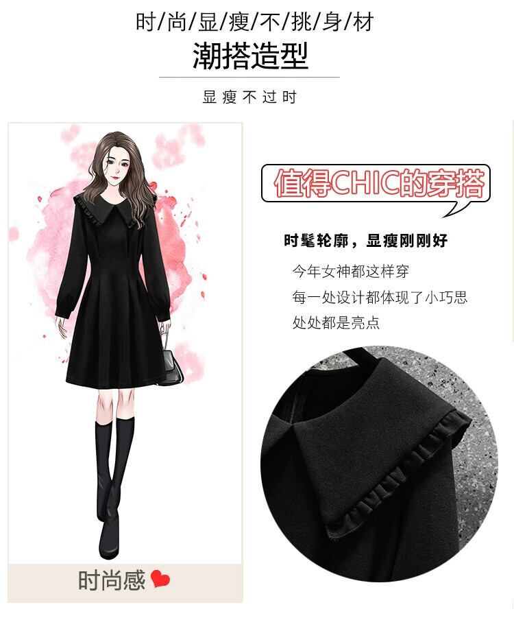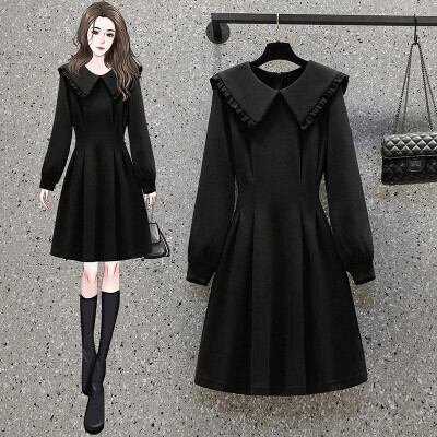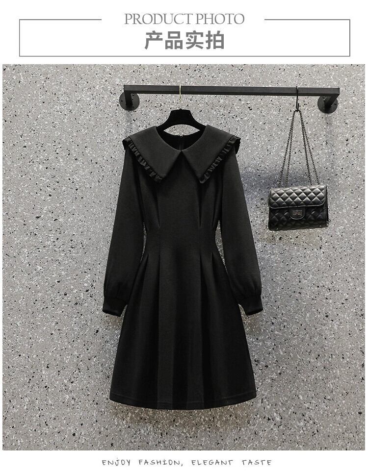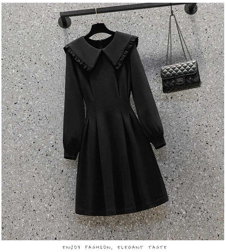 プラスサイズの婦人服 2023 脂肪姉妹秋の新ファッションスタイル年齢を減らす人形の襟 a ラインスカート痩身ミッドレングスドレス 大きめサイズ オータム 秋物 Aライン 8884124779736331