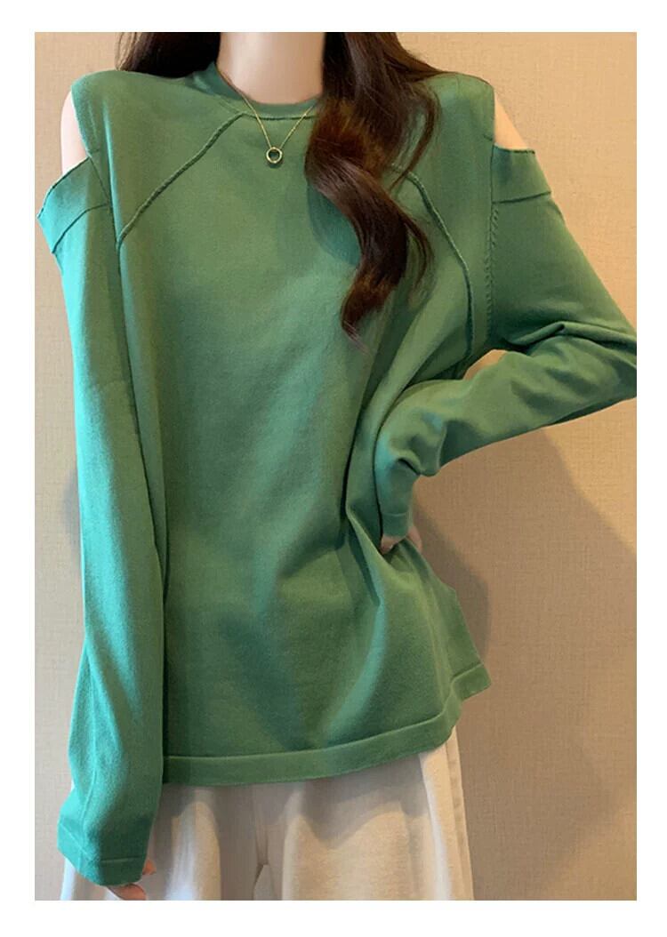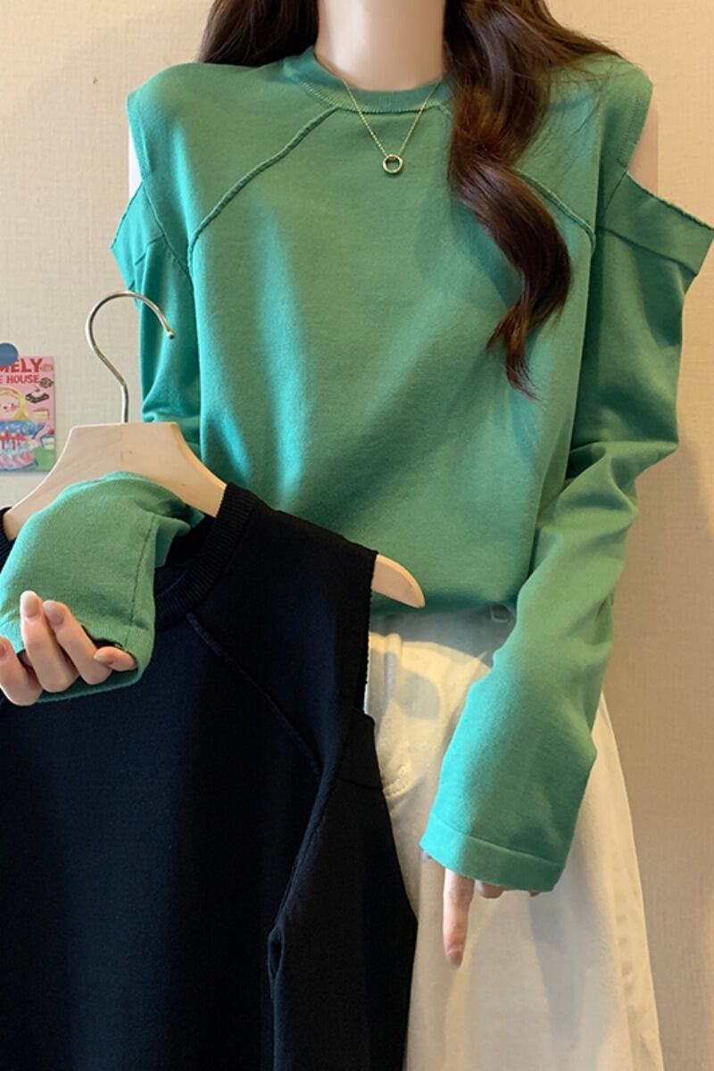 プラスサイズの女性の 2023 秋服脂肪、ファッショナブルなデザイン、痩身セーター、オフショルダー年齢を減らすお腹カバー トップ 大きめサイズ オータム 秋物 8884113635627098