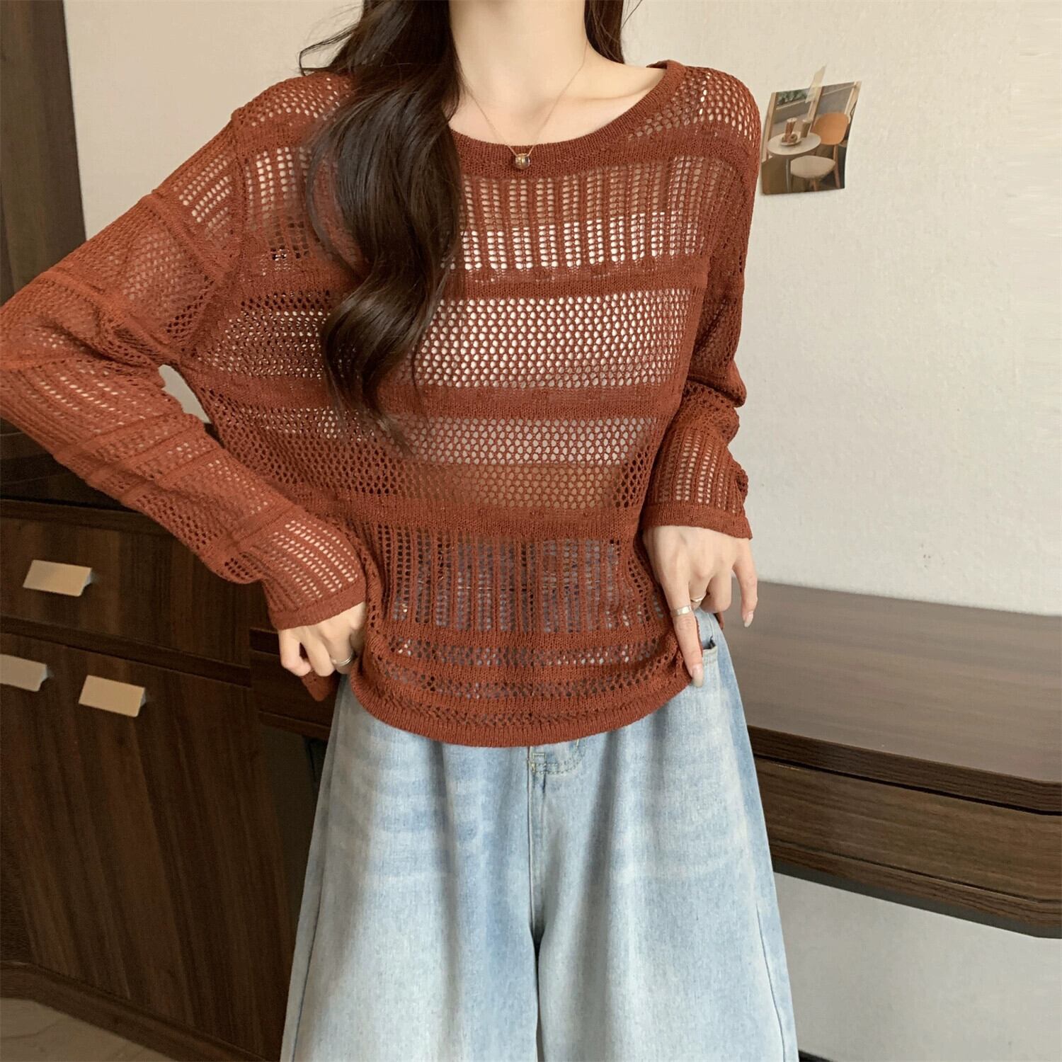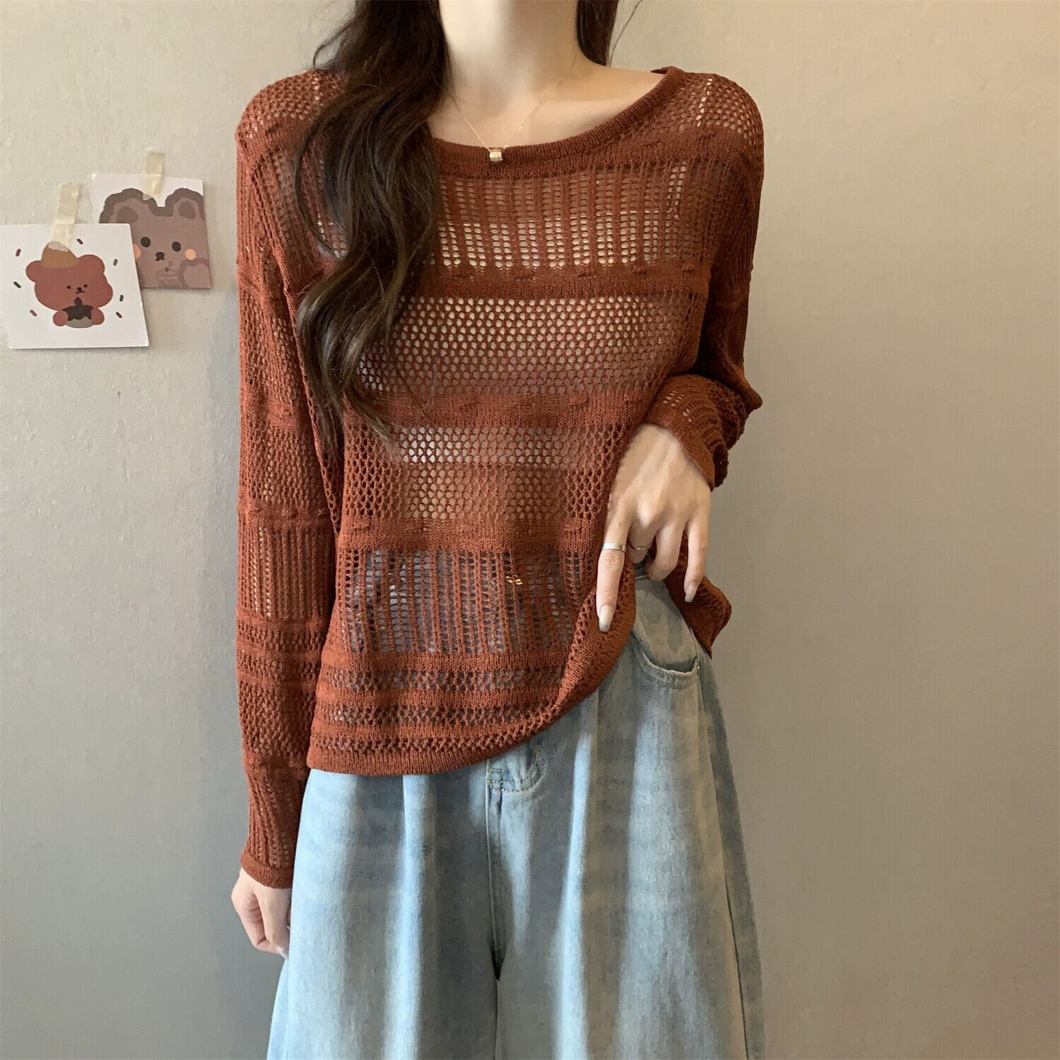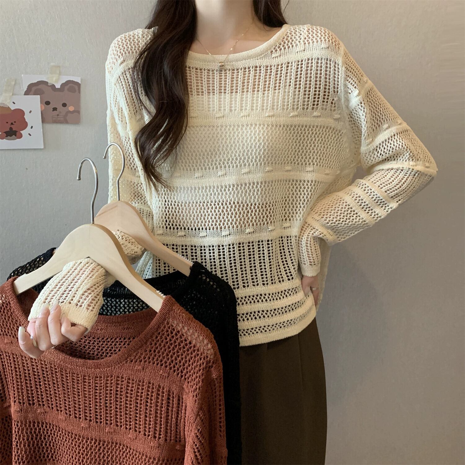 大きいサイズのフレンチブラック日焼け止めブラウス女性秋 2023 新しい女性の脂肪 mm は肉をカバーし、痩身中空セーターに見える 大きめサイズ オータム 秋物 8884167641536554