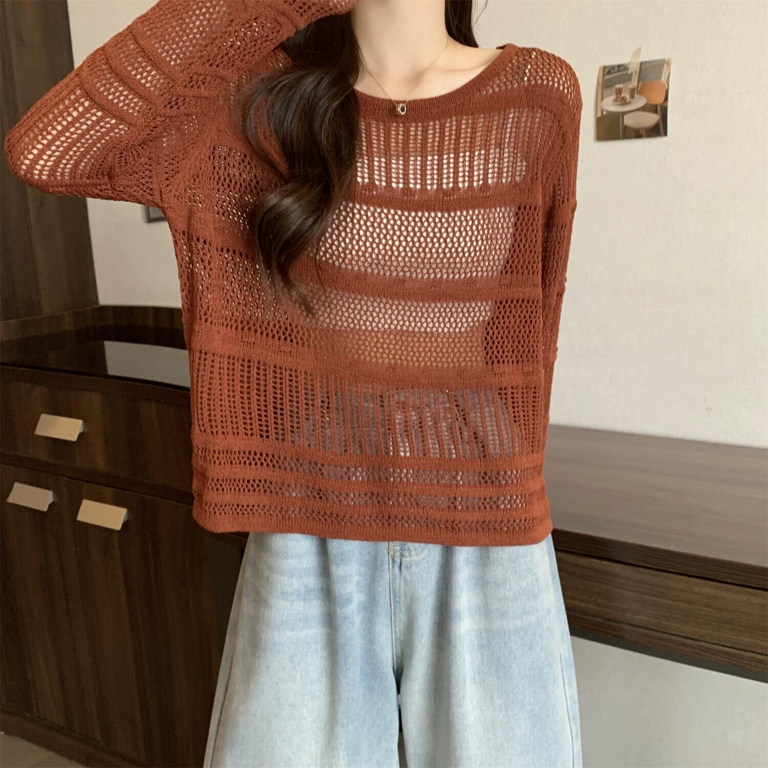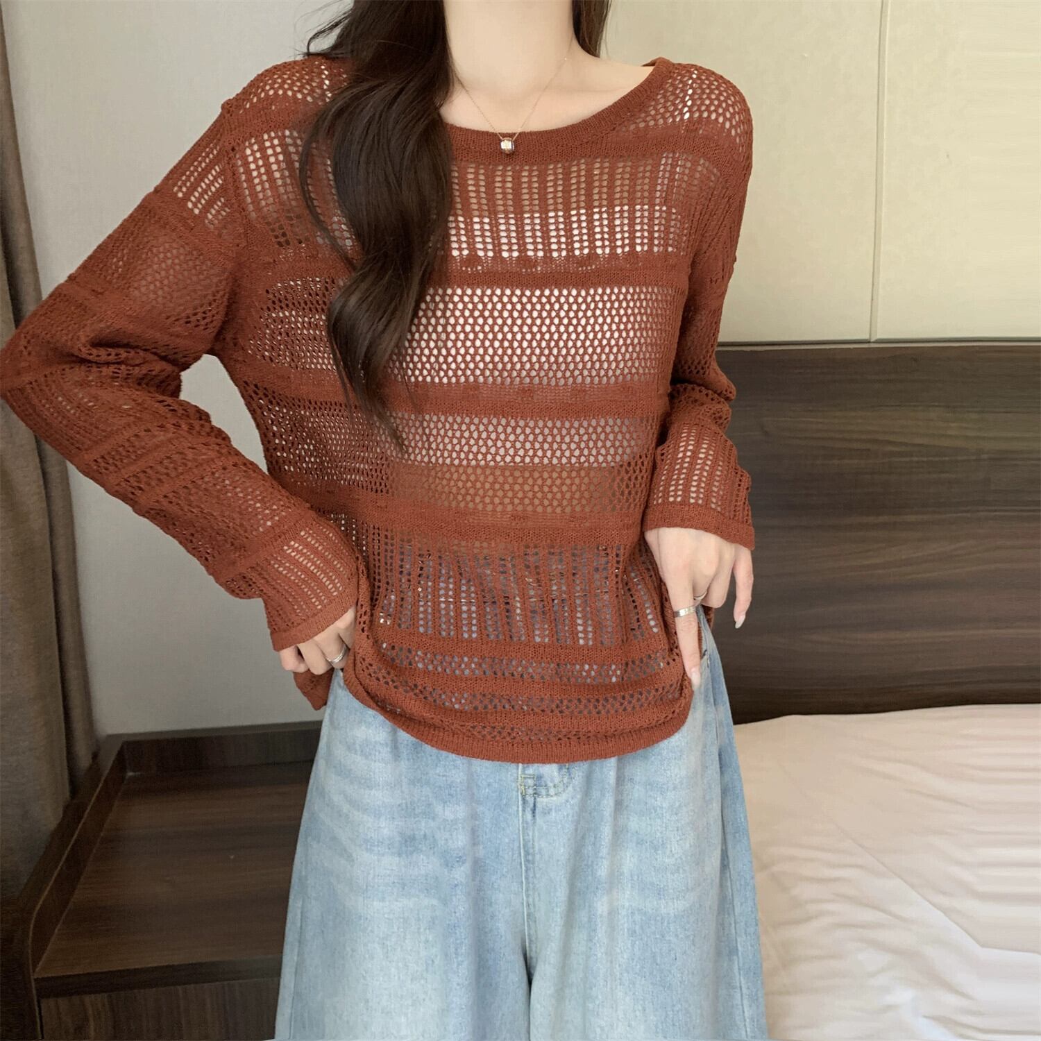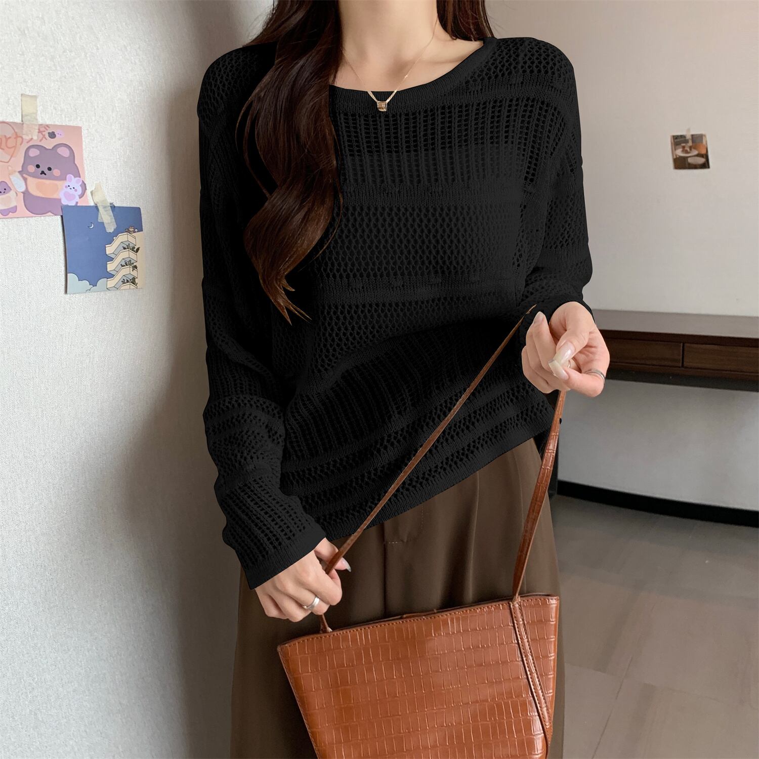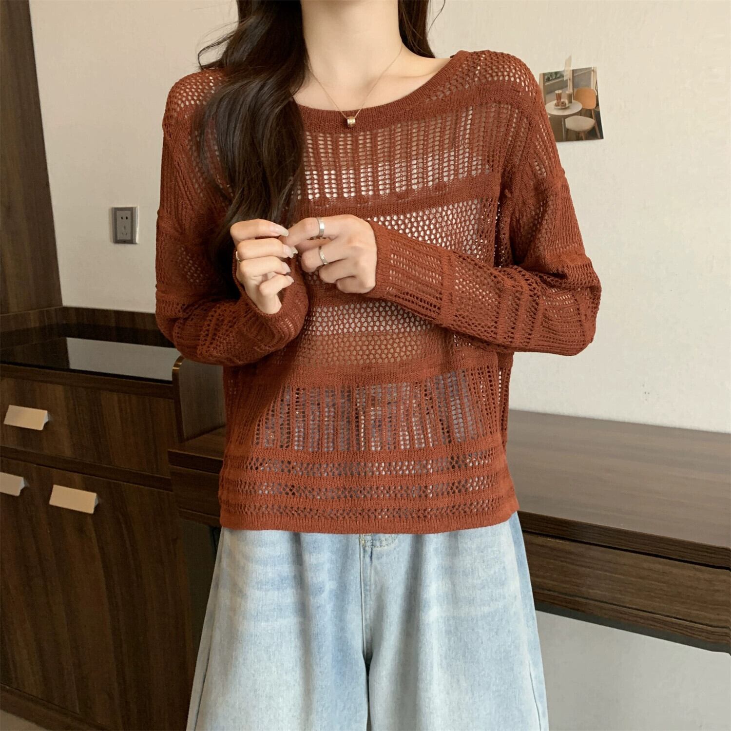 大きいサイズのフレンチブラック日焼け止めブラウス女性秋 2023 新しい女性の脂肪 mm は肉をカバーし、痩身中空セーターに見える 大きめサイズ オータム 秋物 8884167641536554