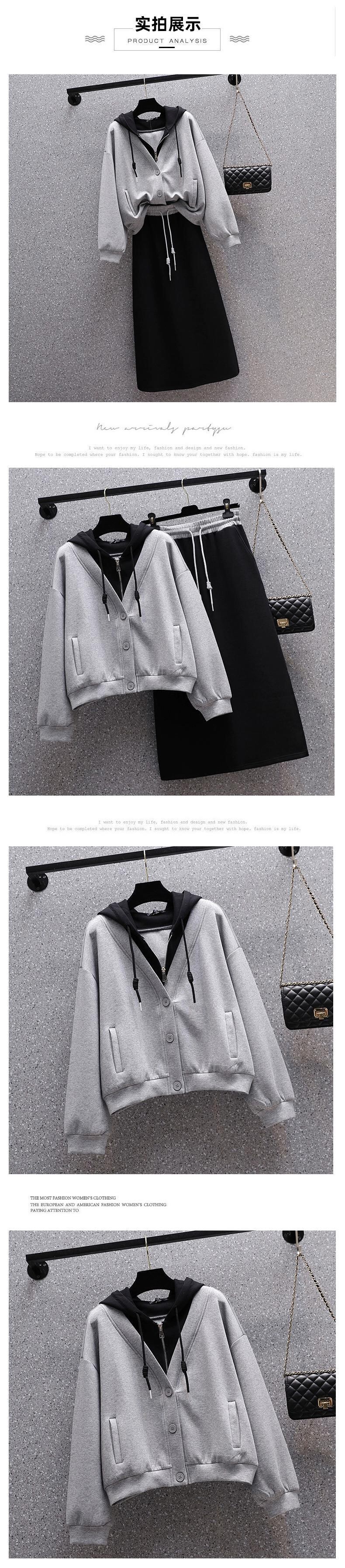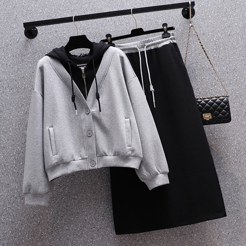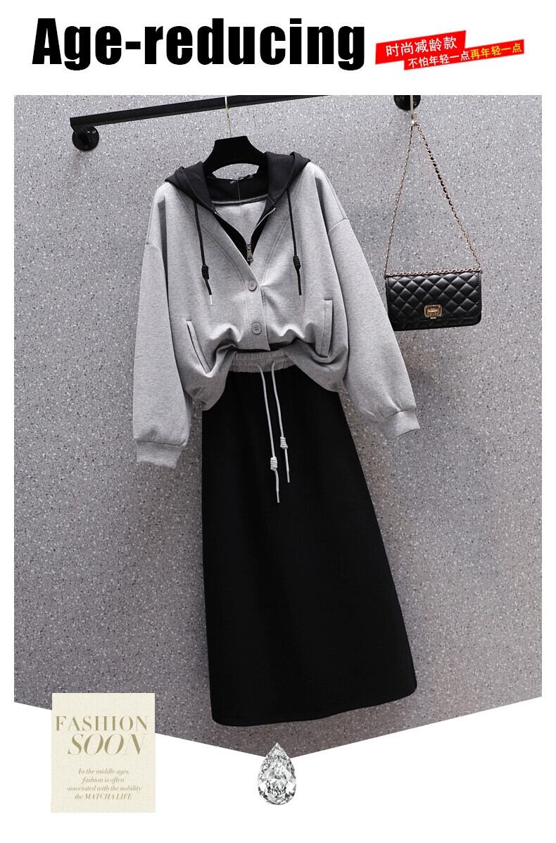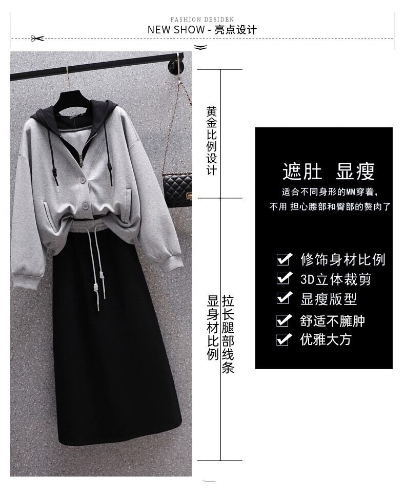 プラスサイズの婦人服 2023 脂肪姉妹秋服新ファッション偽ツーピースフード付きスウェットシャツジャケットスカートツーピースセット 大きめサイズ オータム 秋物 8884167550073252