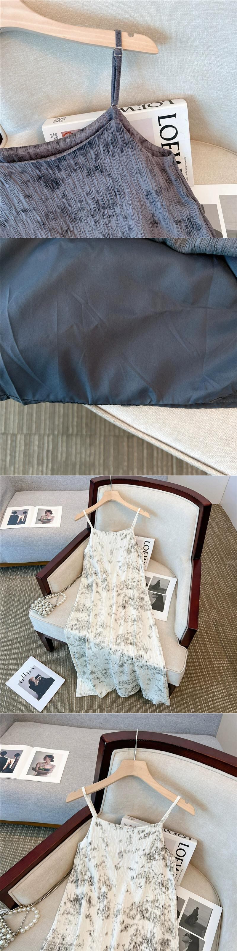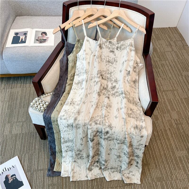 プラスサイズの婦人服 2023 流行の秋の新脂肪姉妹スタイルスリムサスペンダースカートファッショナブルなインクプリントドレス 大きめサイズ オータム 秋物 8884135225324866