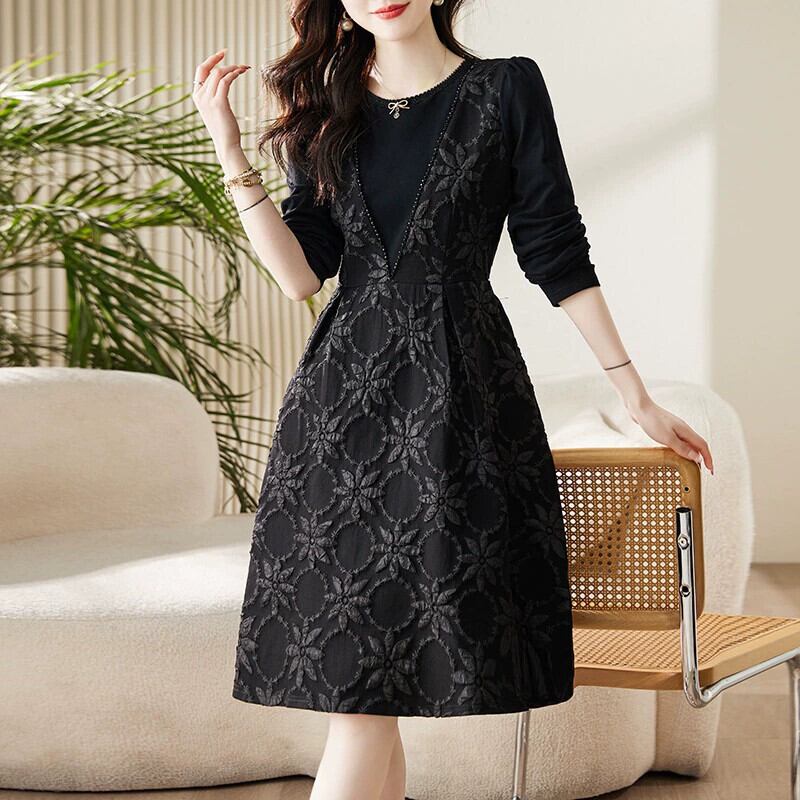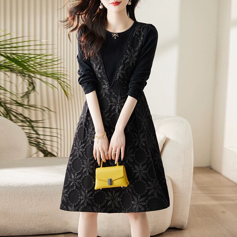 プラスサイズの婦人服 2023 流行の秋の新脂肪姉妹ファッションステッチ偽ツーピーススカートヘップバーンスタイルスリムドレス 大きめサイズ オータム 秋物 8884177570921862
