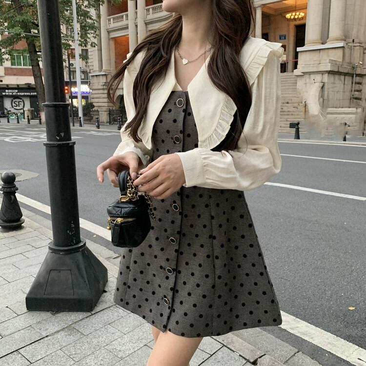 ネットセレブに人気のニッチなデザインの大きいサイズの女性用ドールカラー長袖ワンピースです。脂肪がお腹を覆い、スリムに見えます。 ロング 大きめサイズ 8884144031077810