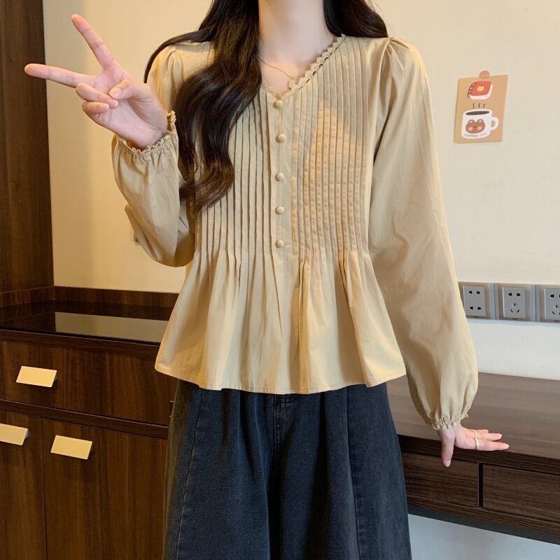 プラスサイズの婦人服 2023 トレンディな秋の新しいファットシスター ファッション スタイル年齢を減らすシャツ ハイエンド痩身と多目的トップス 大きめサイズ オータム 秋物 8884140365800037