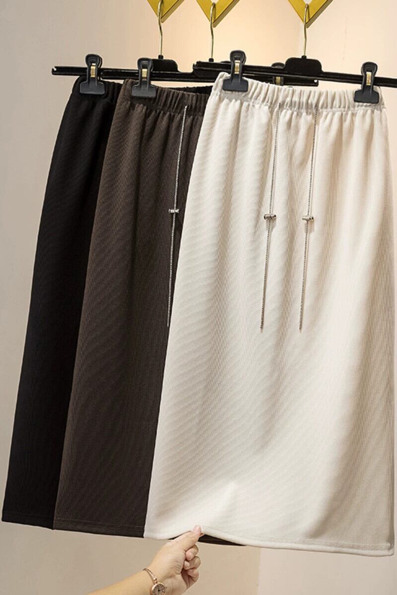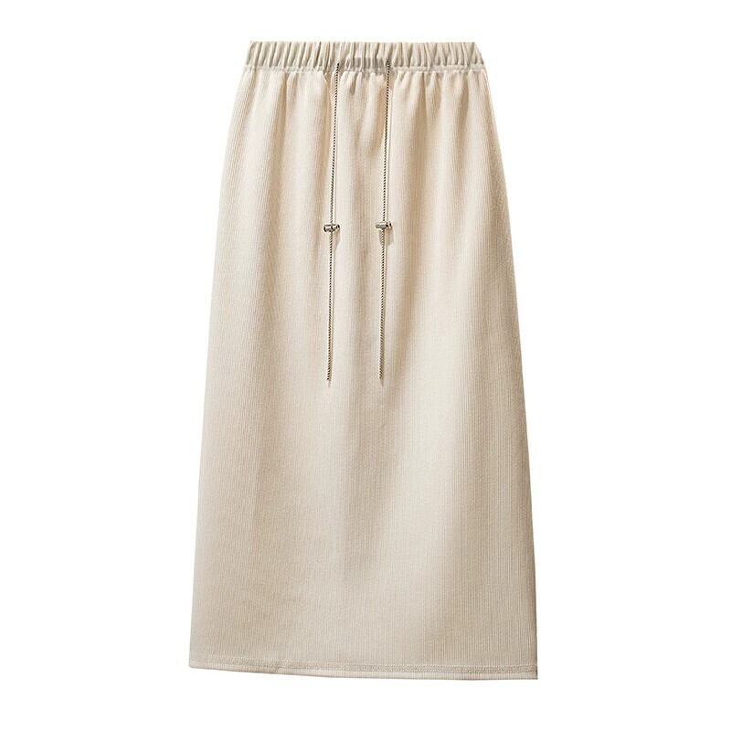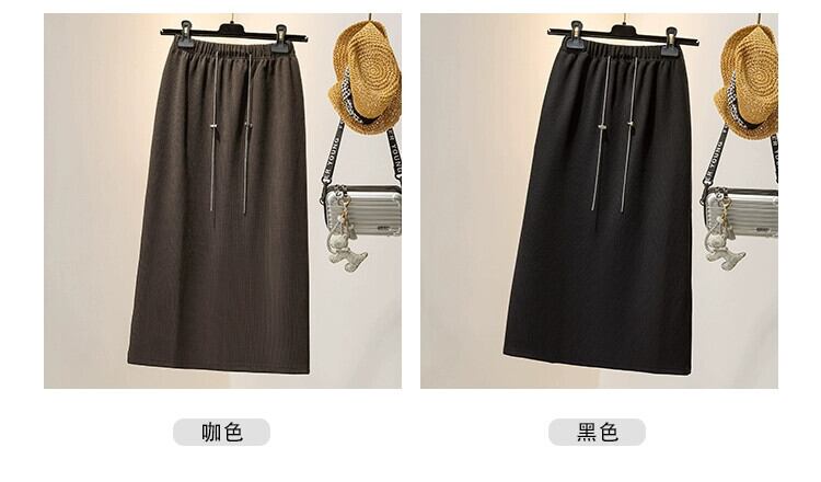 プラスサイズの女性の 2023 秋の太った女の子はスリムで気質のある弾性ウエスト A ラインスカート股をカバーする巾着万能スカート エラスティック 伸縮 大きめサイズ オータム 秋物 Aライン 8884142156657622