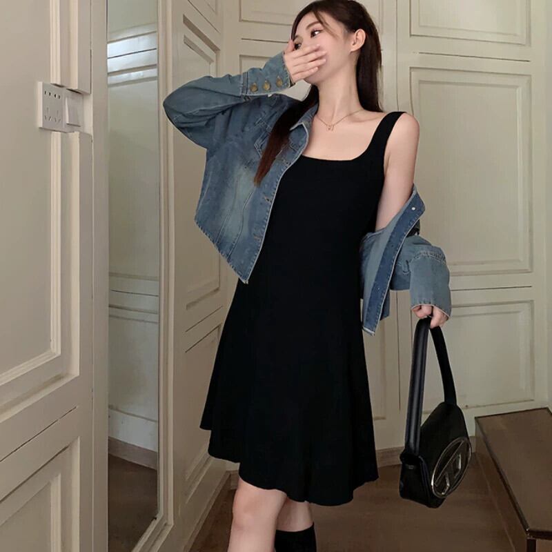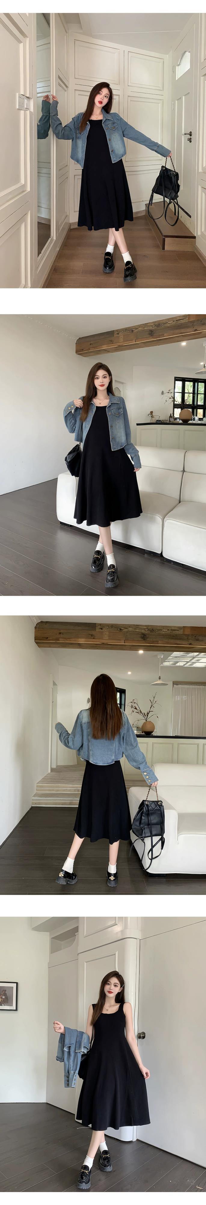 プラスサイズの婦人服 2023 トレンディな秋の新ファットシスターハイエンドスーツ西洋スタイルのデニムジャケットドレス 2 点セット 大きめサイズ オータム 秋物 8884190260262382