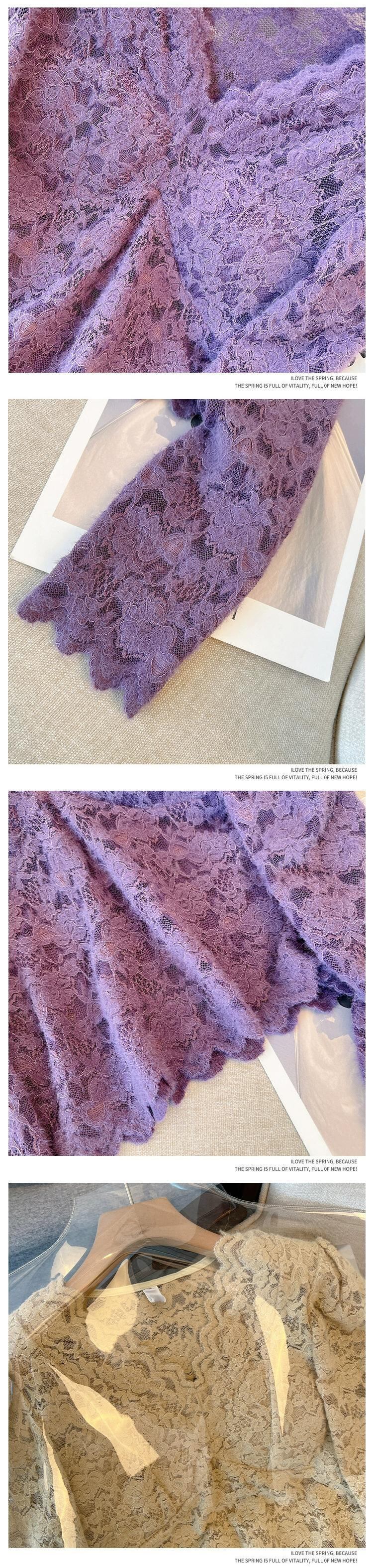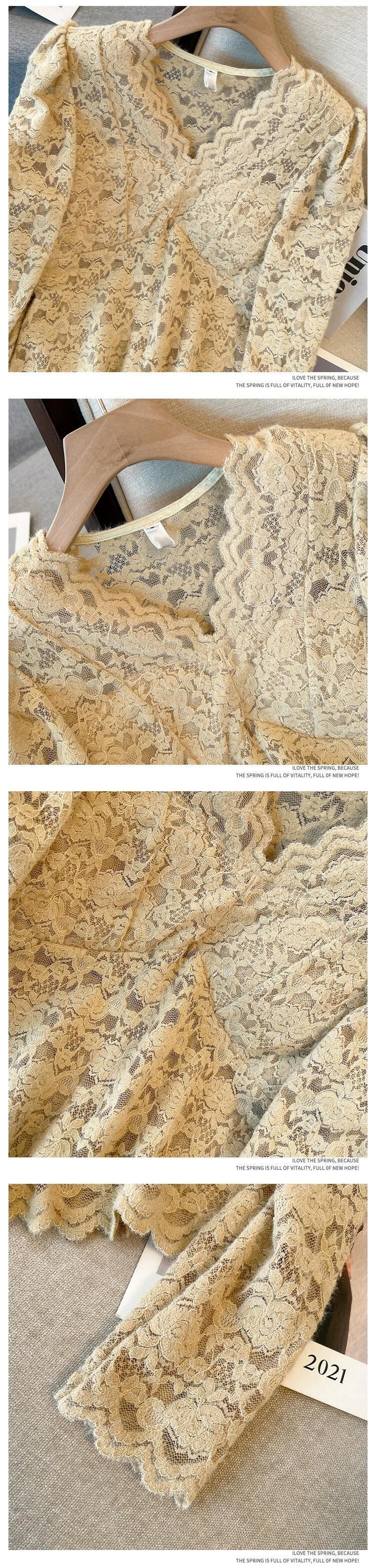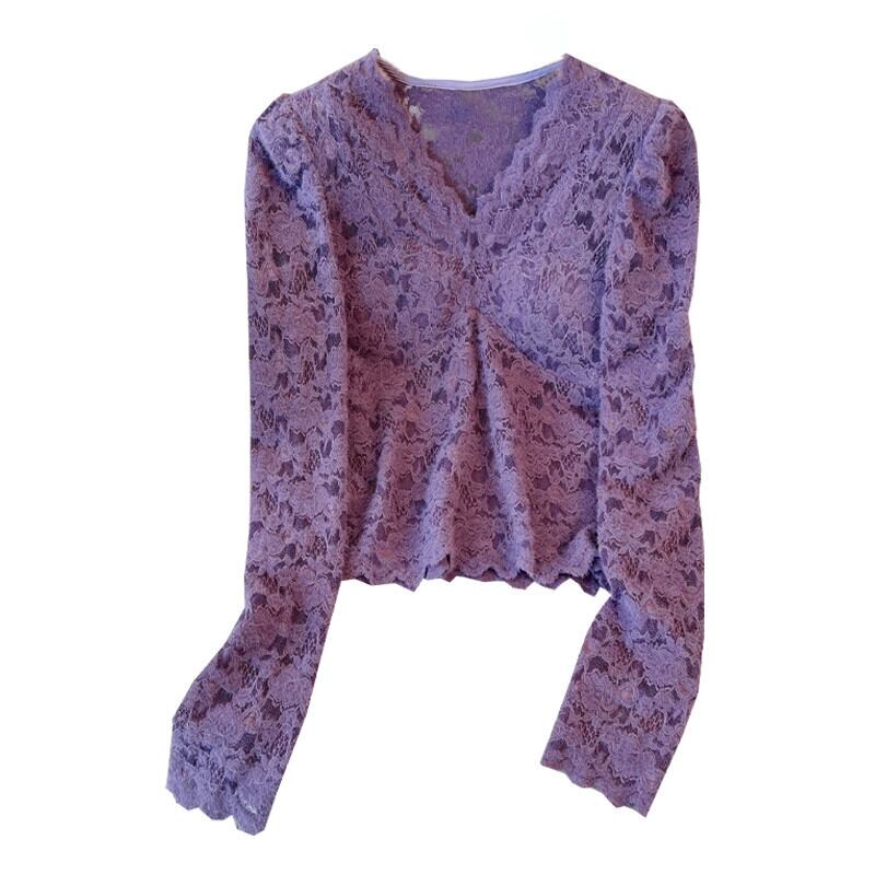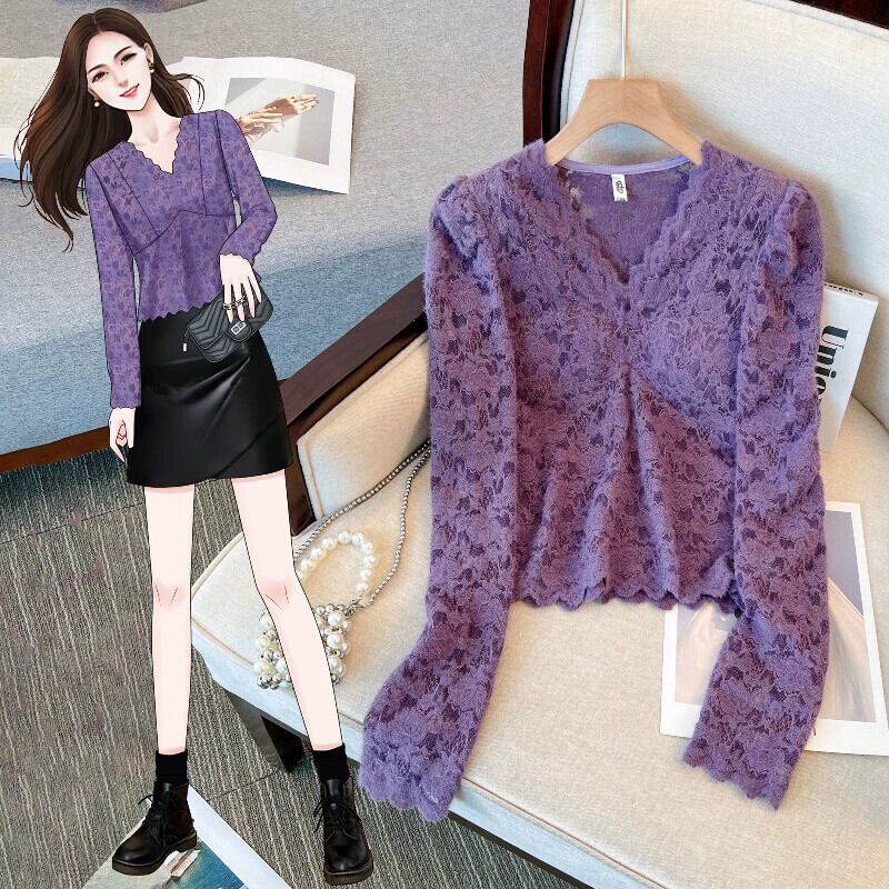 大きいサイズの秋の V ネックハイエンドファッションレースシャツ脂肪女性の新しいフレンチスタイルスリム長袖トップ ロング 大きめサイズ オータム 秋物 Vネック 8884180326095627