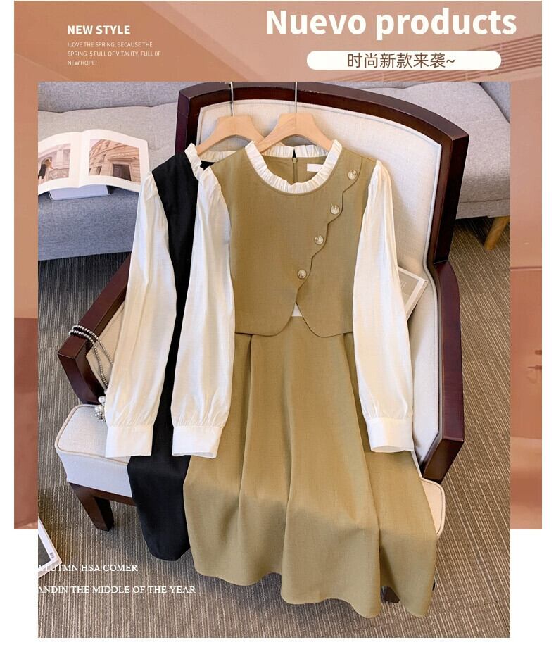 プラスサイズの婦人服 2023 流行の秋の新脂肪姉妹ファッション年齢削減ホリデーツーピースミッドレングススカート多目的痩身ドレス 大きめサイズ オータム 秋物 8884189630241742