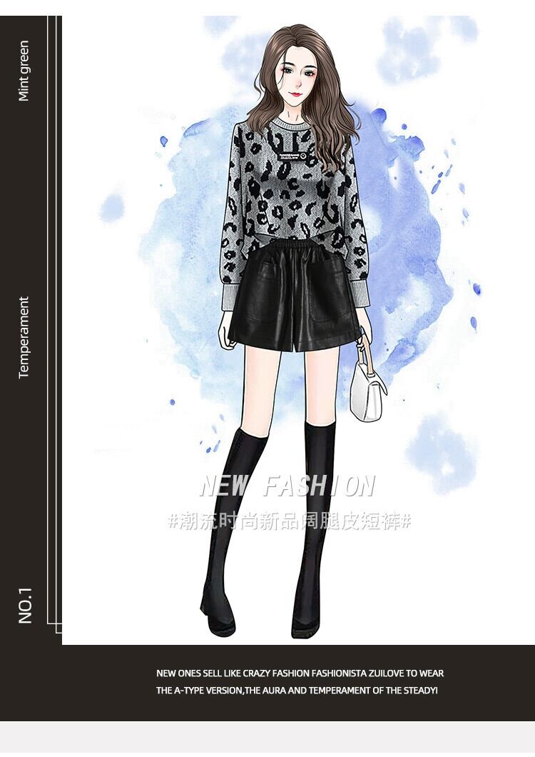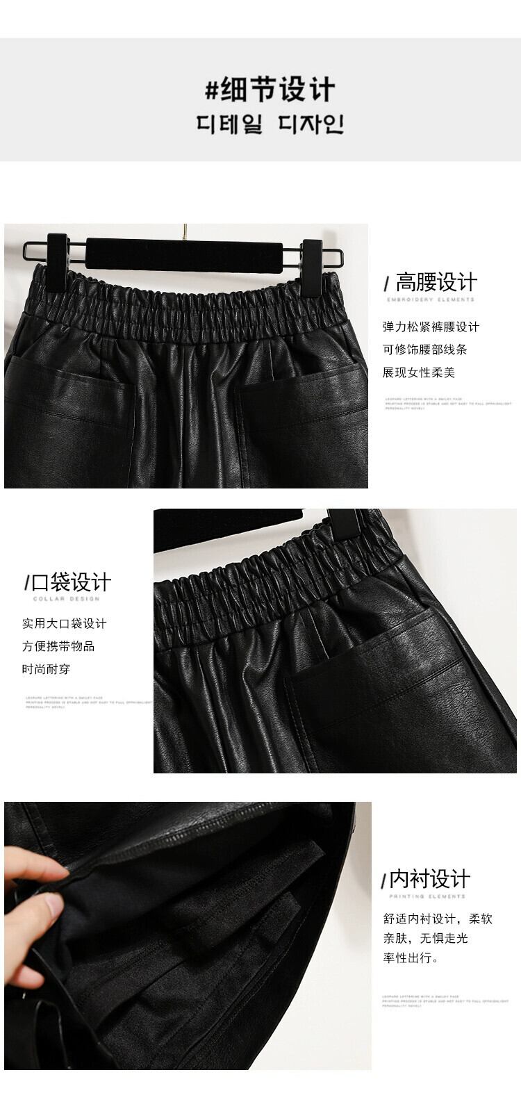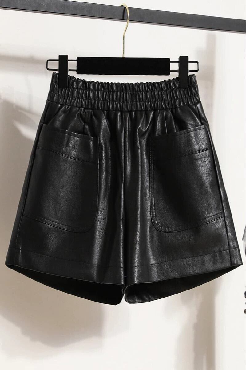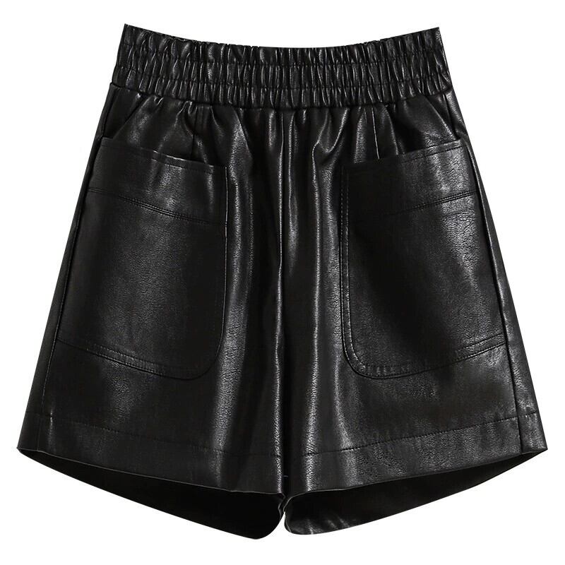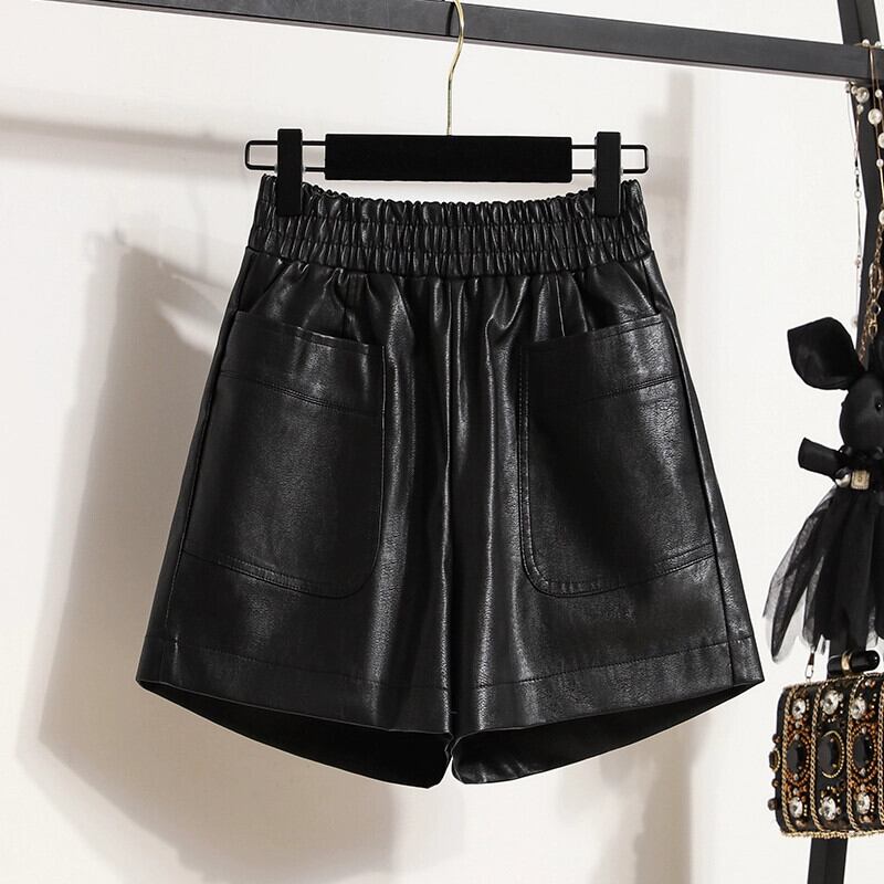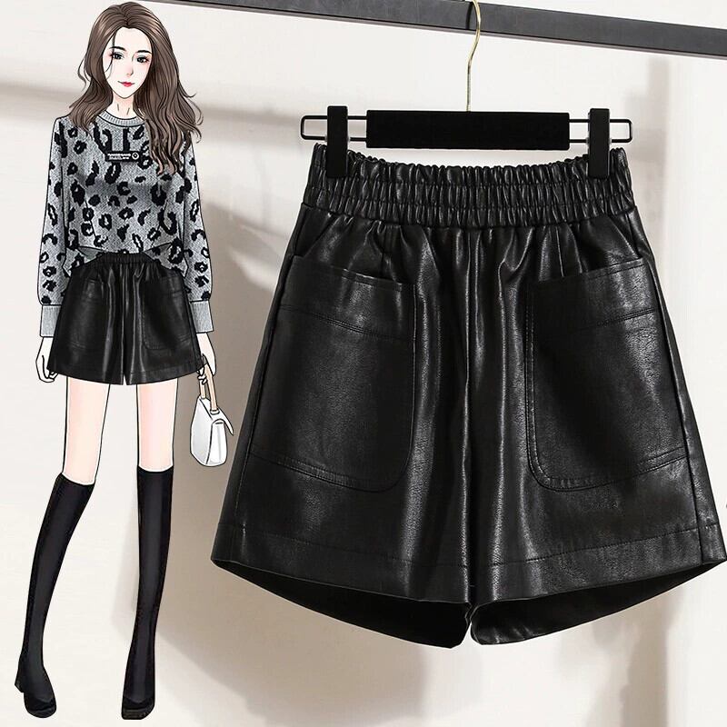 2023 秋冬プラスサイズの女性のファット mm ハイエンド pu レザーショートパンツ弾性ウエスト痩身 A ラインワイドレッグブーツパンツ エラスティック 伸縮 大きめサイズ オータム 秋物 ウィンター 冬物 ショーツ ブルマー Aライン 8884123852855158