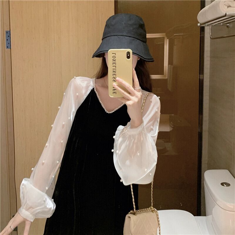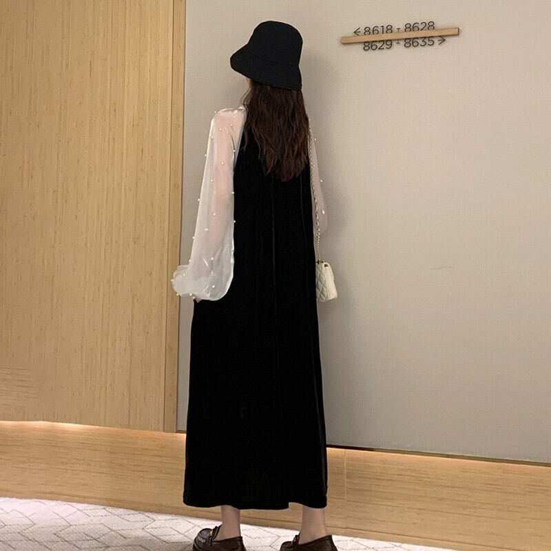 プラスサイズの婦人服 2023 流行の秋の新脂肪気質ルーズスリム V ネックドレスファッションスプライシングロングスカート 大きめサイズ オータム 秋物 Vネック 8884117469183528