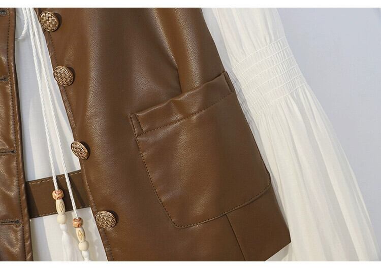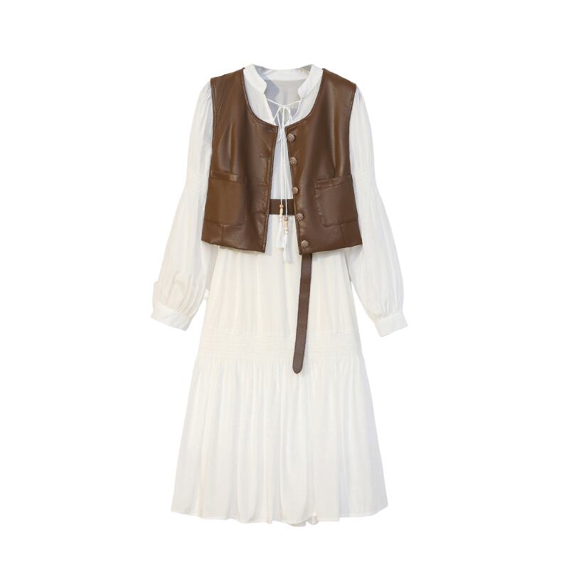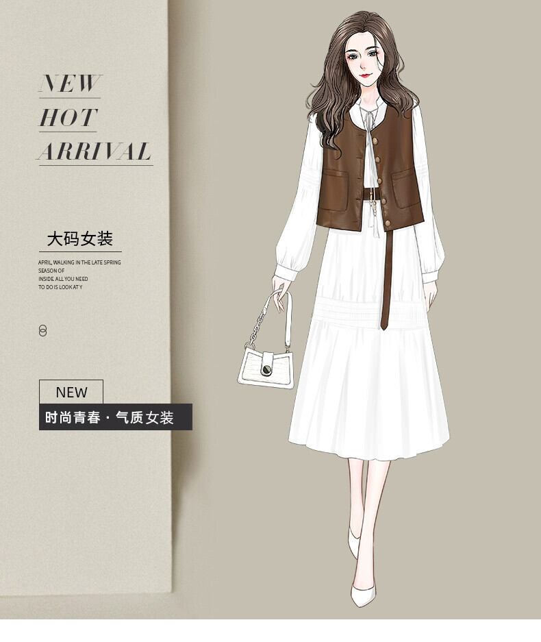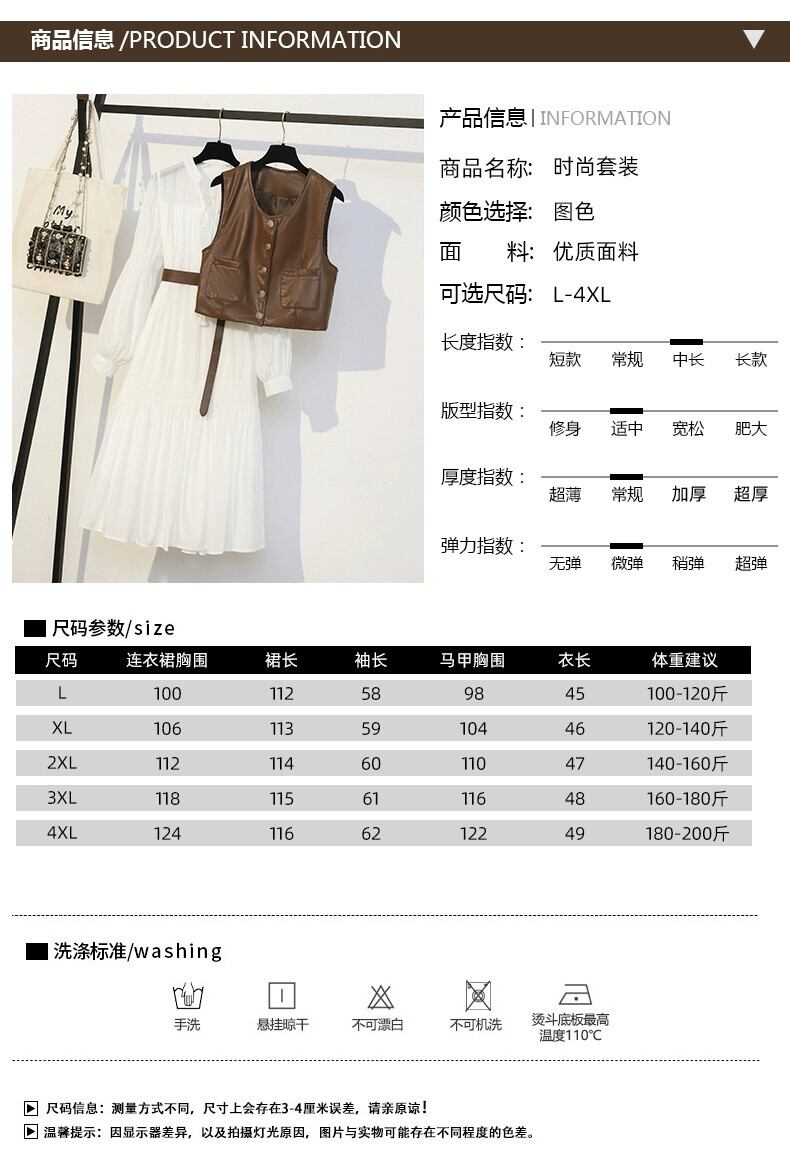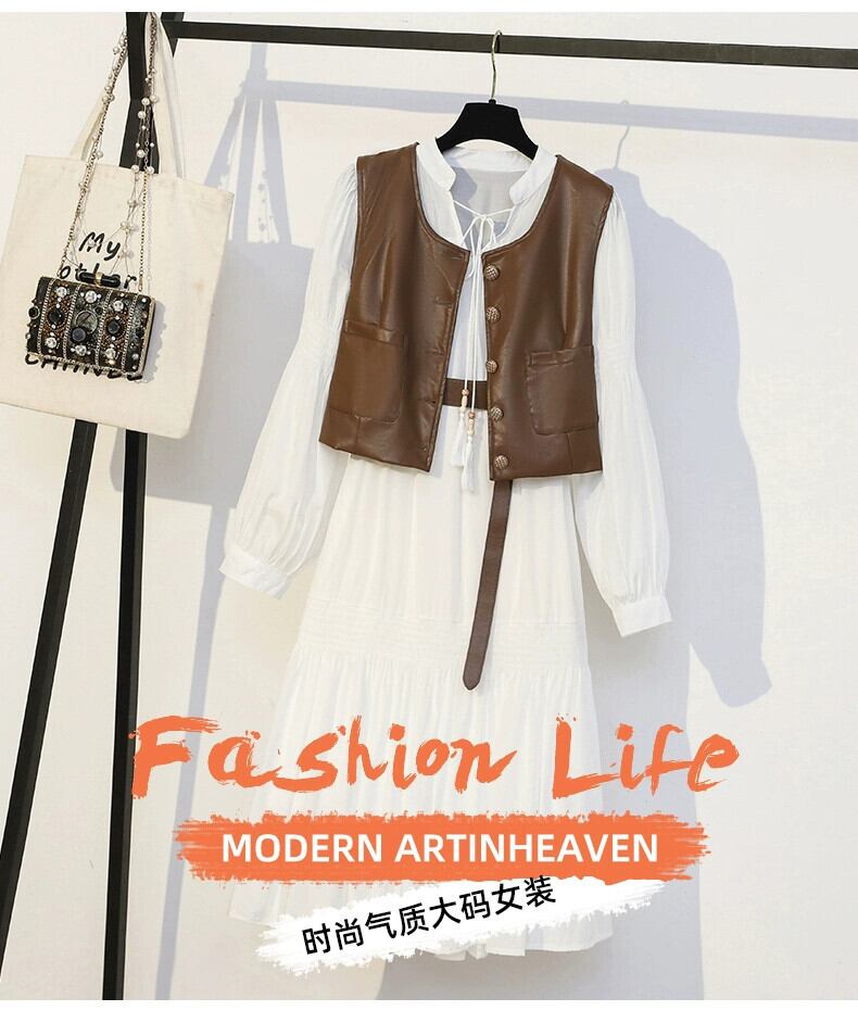 プラスサイズの婦人服 2023 脂肪姉妹秋の新しい気質ドレス痩身腹カバースーツ革ベスト 2 点セット 大きめサイズ オータム 秋物 レザー 8884141700208977