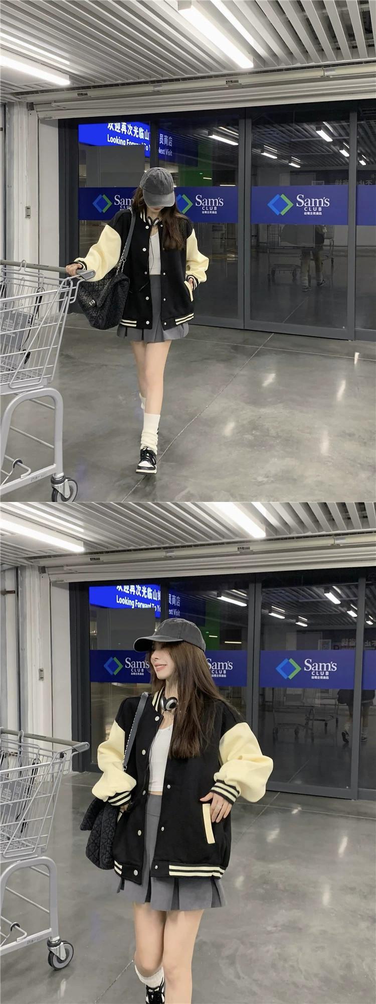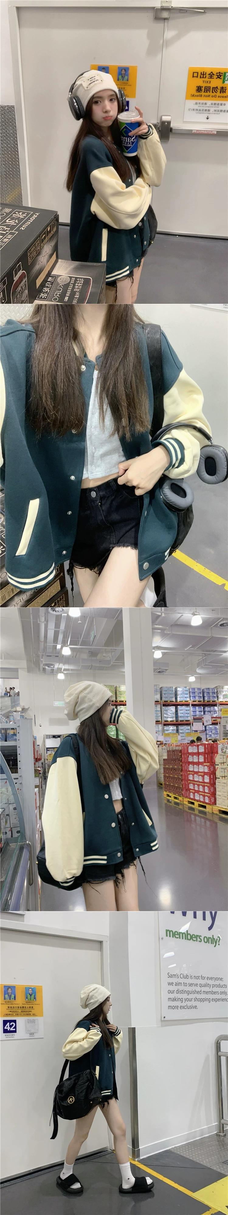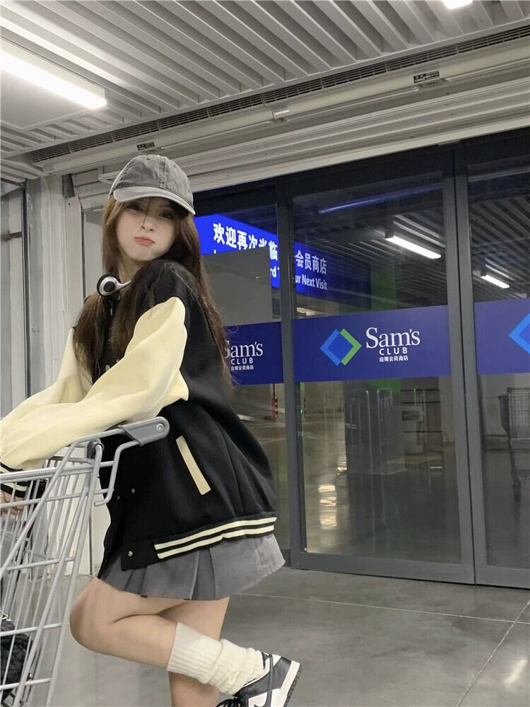 プラスサイズの婦人服 2023 ファットシスター秋の新ルーズでスリムなアメリカンレトロ野球ユニム多目的ジャケット 大きめサイズ オータム 秋物 8884160394066587
