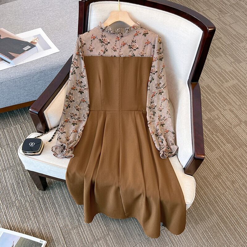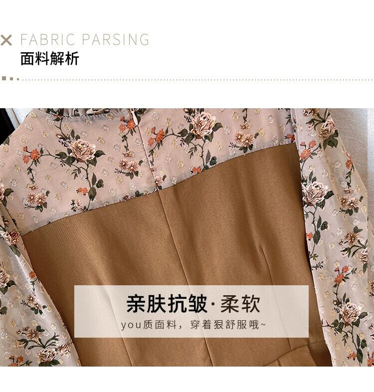 プラスサイズの女性の 2023 トレンディな秋スタイルファットシスター気質多用途花柄スカートフェイクツーピーススプライシングドレス 大きめサイズ オータム 秋物 8884162217229624