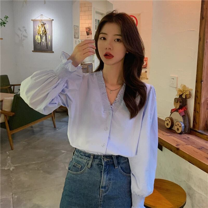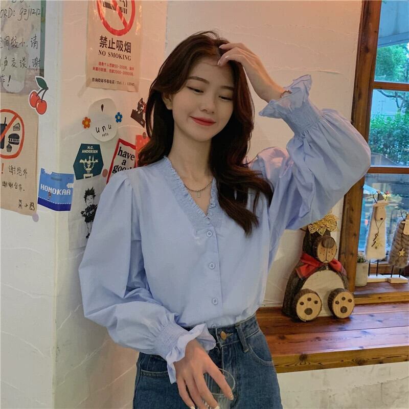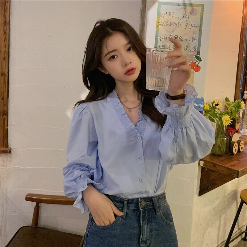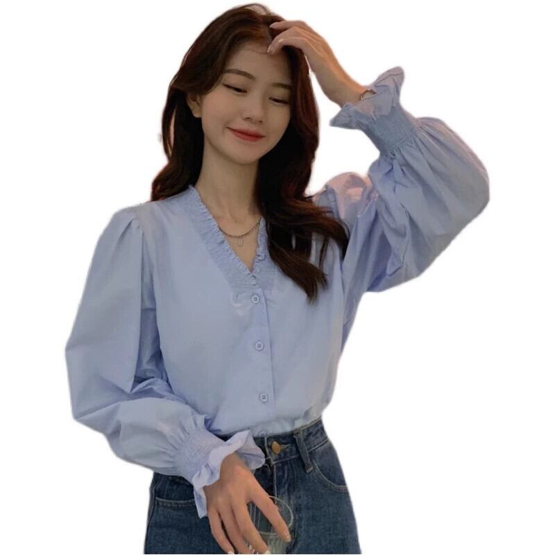 2023 大きいサイズ秋の新フレンチスタイル V ネックシャツ女性デザインセンスニッチシャツ痩身トップ 大きめサイズ オータム 秋物 Vネック 8884121608743121