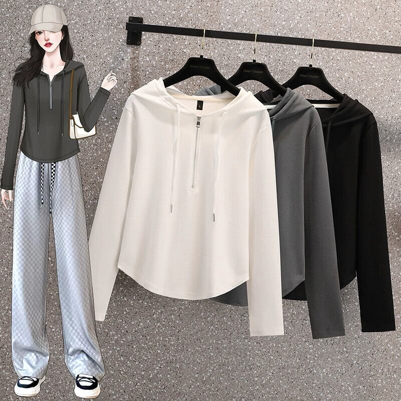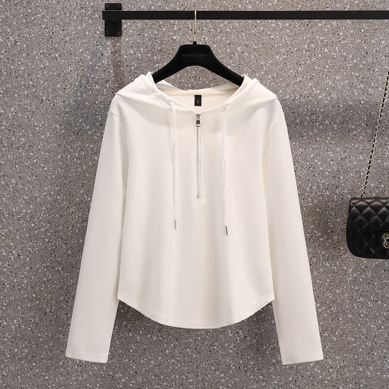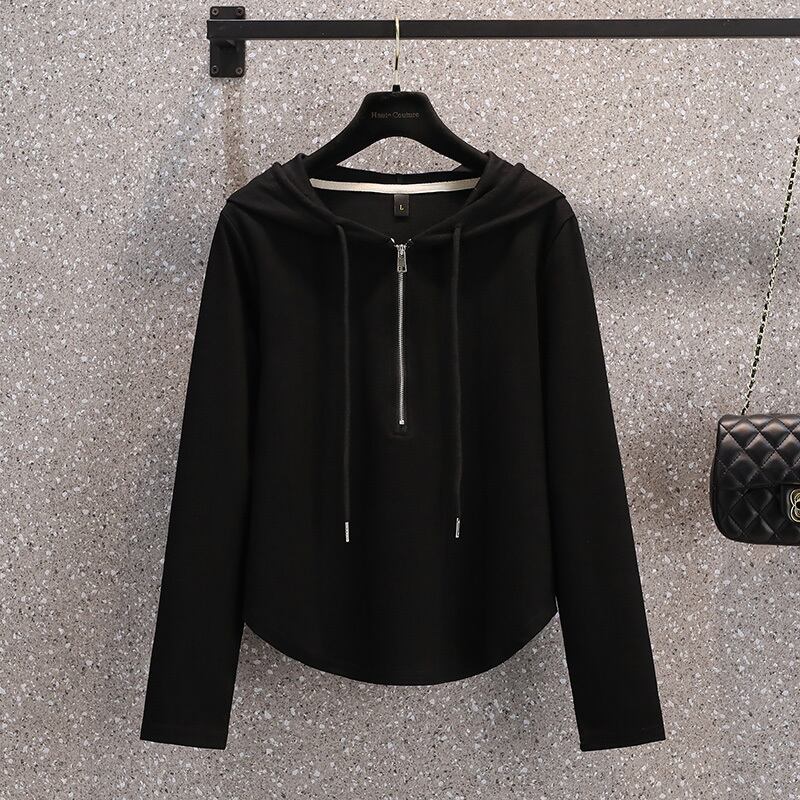 プラスサイズの婦人服 2023 ファットシスター秋の新デザイントップススリムで汎用性の高いカジュアルスポーツスタイルのフード付きスウェットシャツ 大きめサイズ オータム 秋物 8884115854463141
