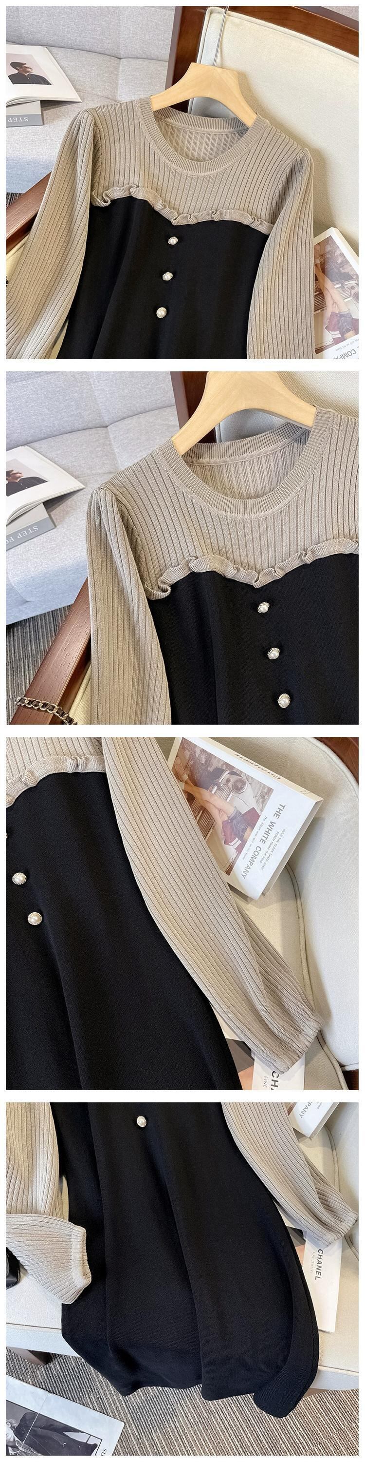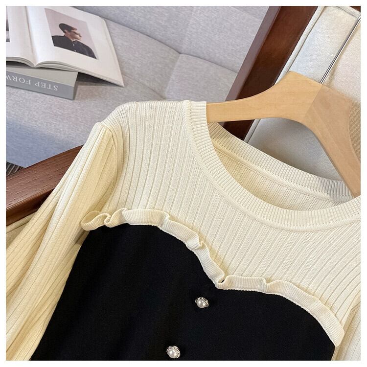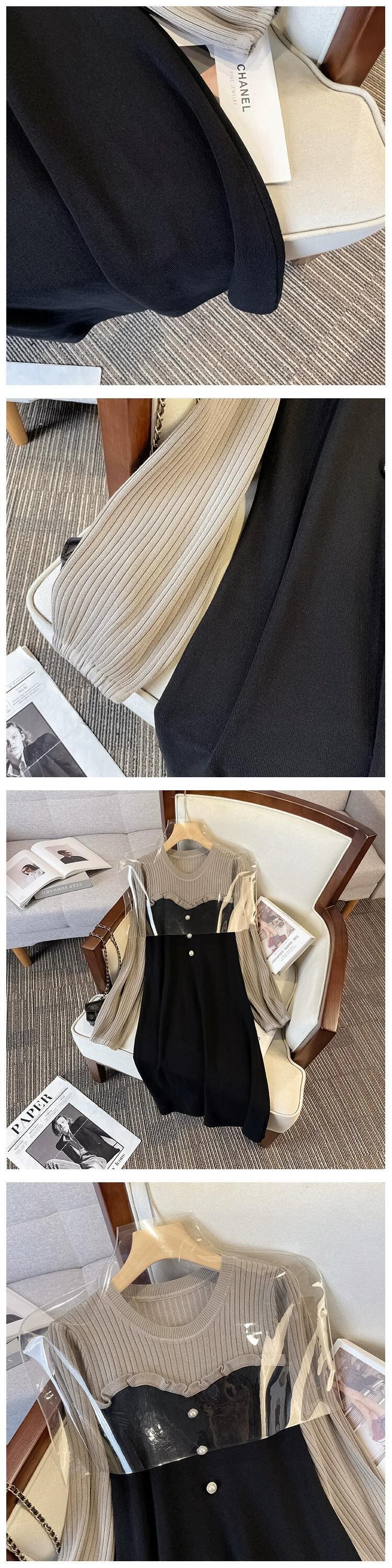 プラスサイズの婦人服 2023 脂肪姉妹秋の新フレンチヘップバーンスタイル偽ツーピーススカート痩身ニットドレス 大きめサイズ オータム 秋物 8884122774561132