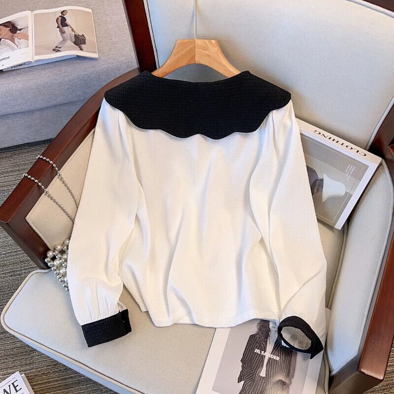 プラスサイズの婦人服 2023 トレンディな秋の新しいファットシスター痩身人形の襟長袖トップスファッショナブルで多用途なウエスタンシャツ ロング 大きめサイズ オータム 秋物 8884169917034592