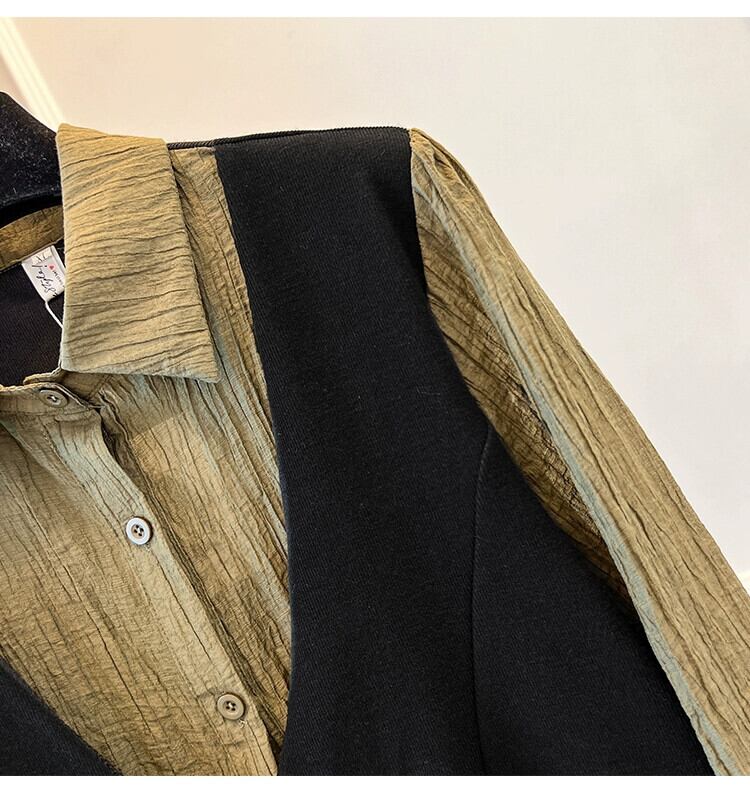 プラスサイズの婦人服 2023 ファットシスター秋の新デザインニッチ長袖トップス偽ツーピース eign スタイルフレンチシャツ ロング 大きめサイズ オータム 秋物 8884181022796251
