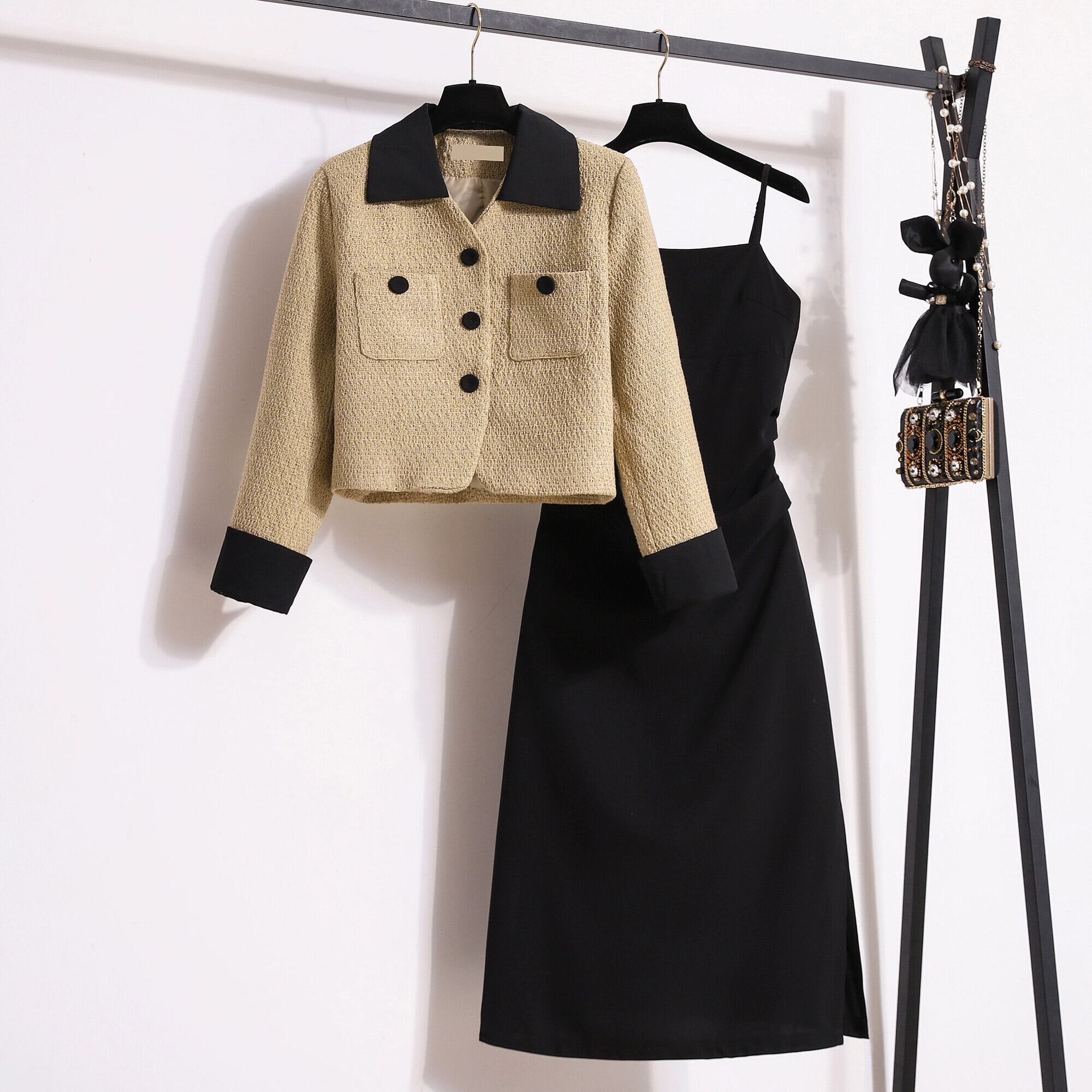プラスサイズの婦人服 2023 ファットシスター秋の新ファッションスーツサスペンダードレスショートジャケット痩身 2 点セット 大きめサイズ オータム 秋物 8884193023143808