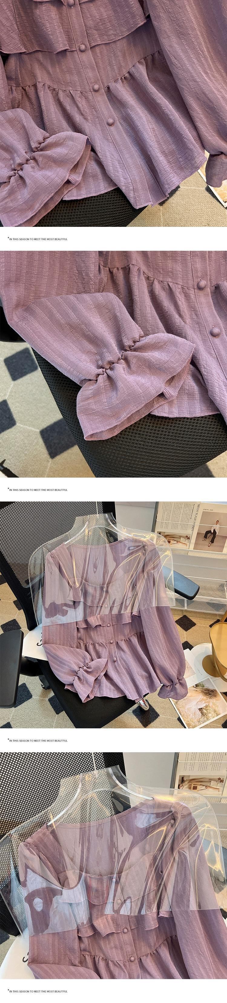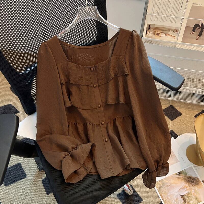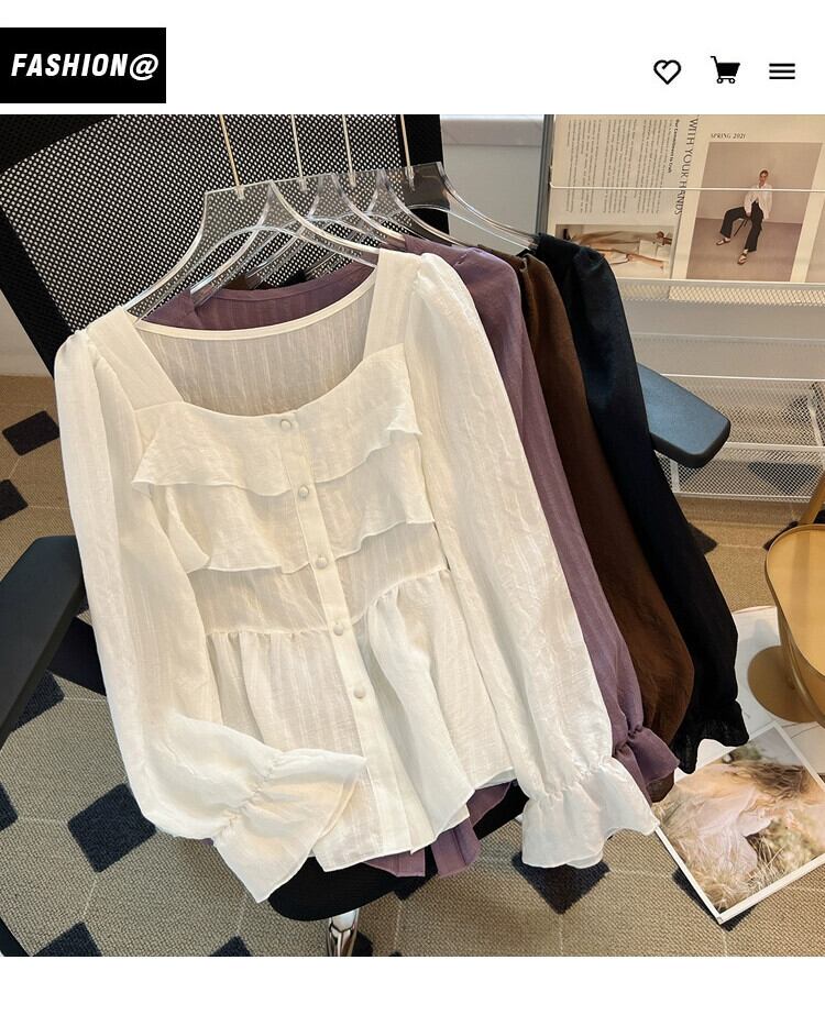 プラスサイズの婦人服 2023 流行の秋の新しい脂肪甘い質感長袖シャツファッショナブルな多目的無地トップ ロング 大きめサイズ 大人ガーリー スウィート キュート カジュアル オータム 秋物 ソリッドカラー 8884163785169450
