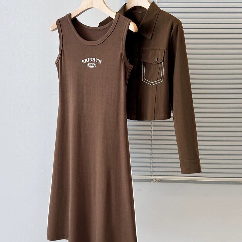 プラスサイズの婦人服 2023 流行の秋の新ファットシスターファッションスーツハイエンドドレスファッションベスト 2 点セット 大きめサイズ オータム 秋物 8884128833785880