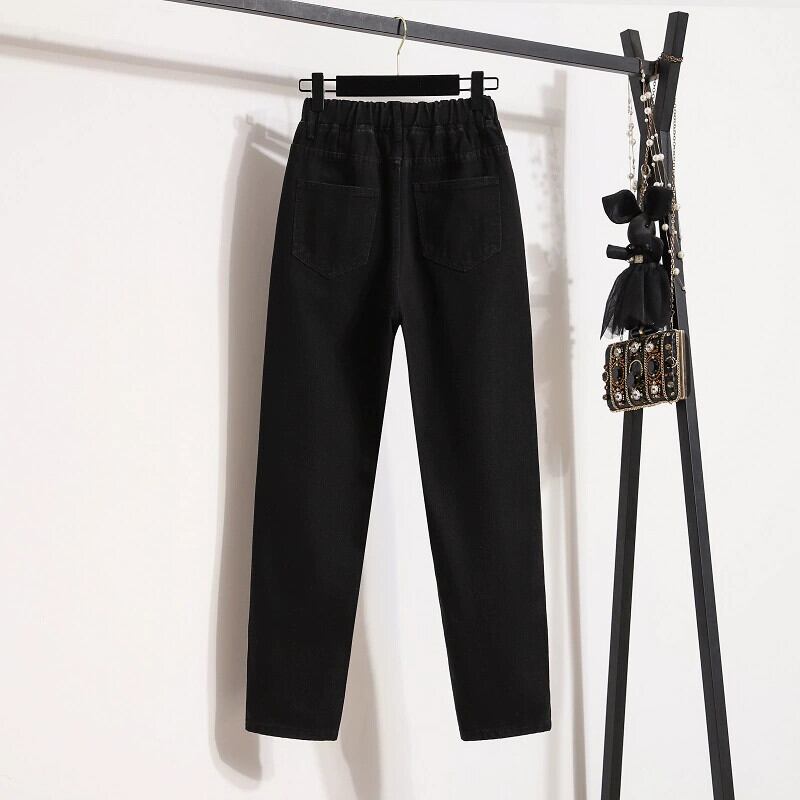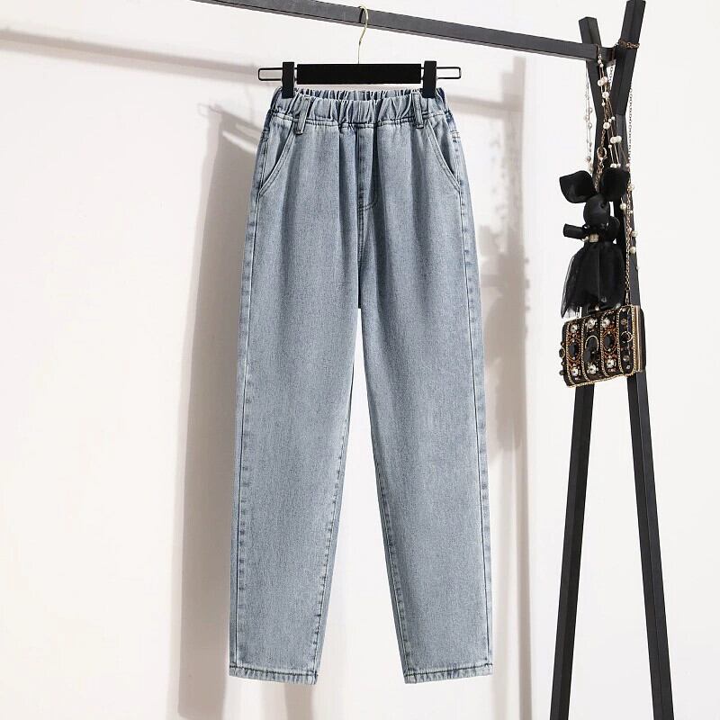 プラスサイズの婦人服 2023 秋の新ファットシスター弾性ウエストジーンズスリムで多用途のファッショナブルなハーレムパンツ エラスティック 伸縮 大きめサイズ オータム 秋物 8884194586798812