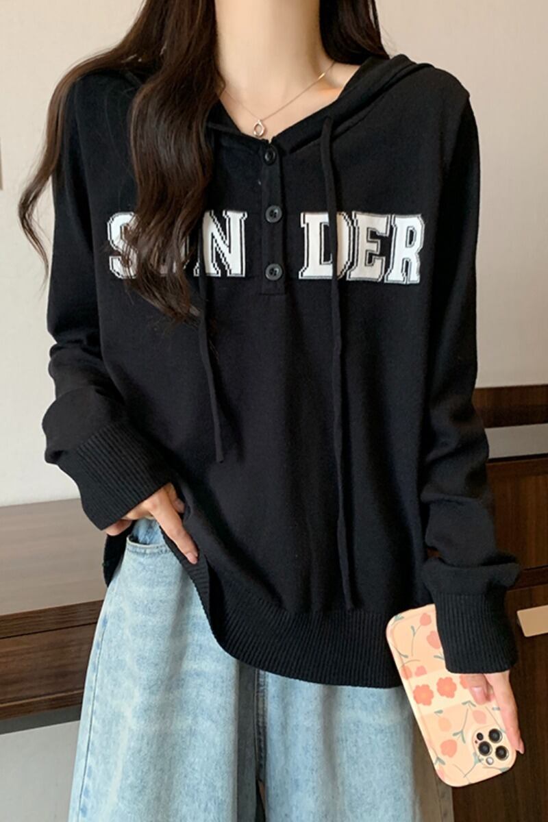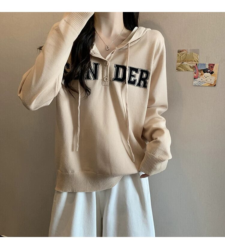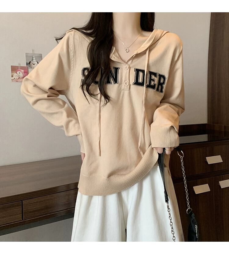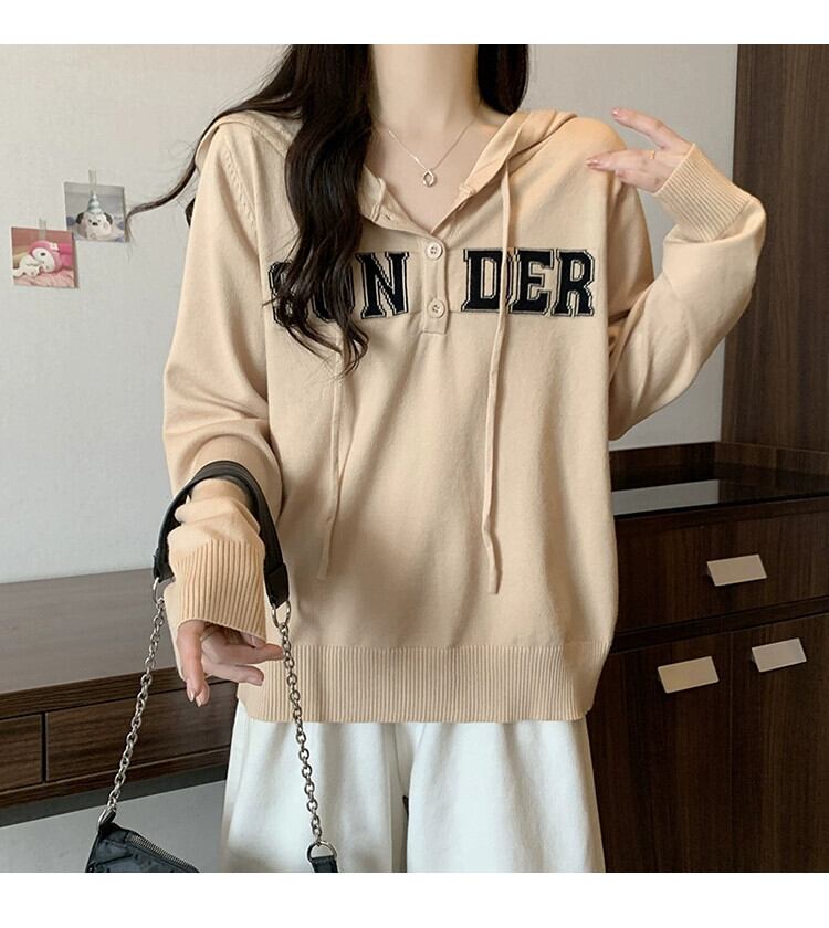 プラスサイズの女性の 2023 トレンディな秋の新しいファットシスターカジュアルレタープリントトップスハイエンドフード付きニットスウェットシャツ 大きめサイズ オータム 秋物 8884114049833161