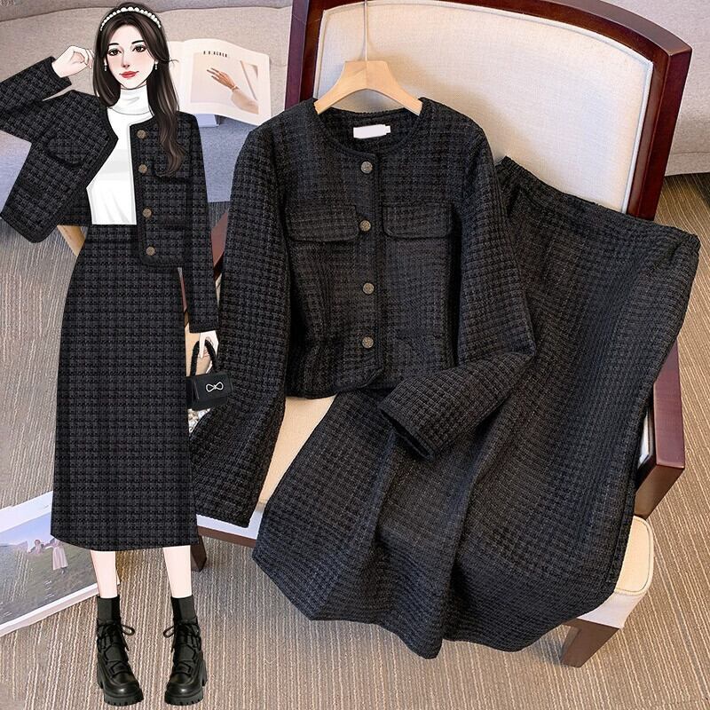 プラスサイズの婦人服 2023 流行の秋の新脂肪姉妹気質レトロスーツハイエンドのトップとスカートの 2 点セット 大きめサイズ オータム 秋物 8884176952196393