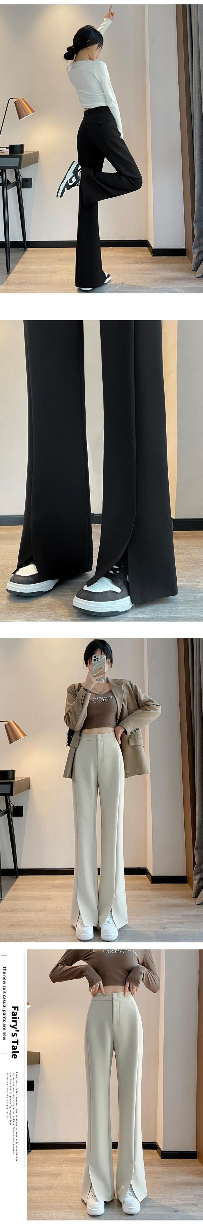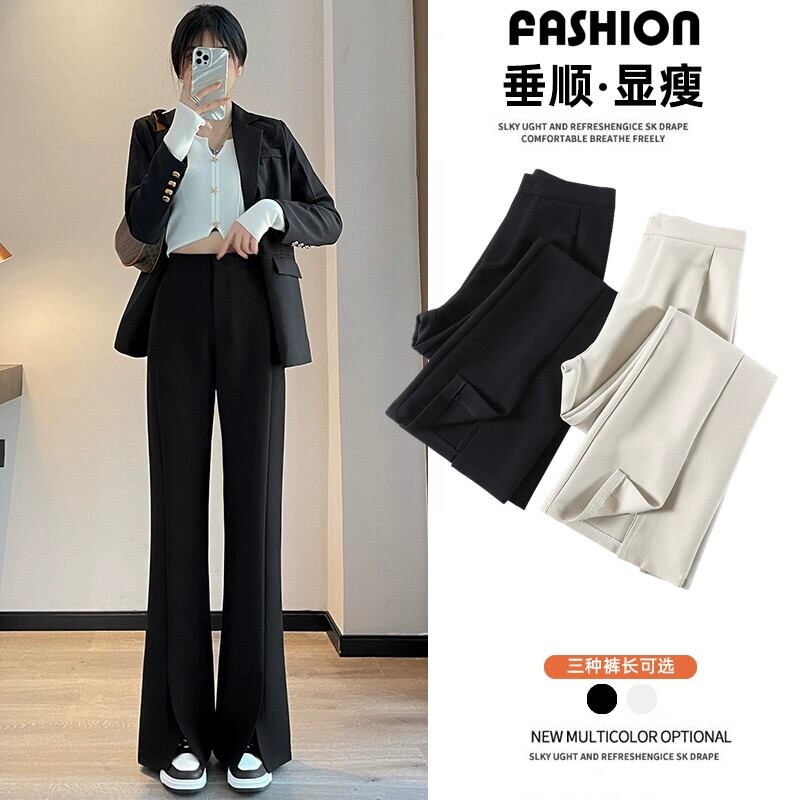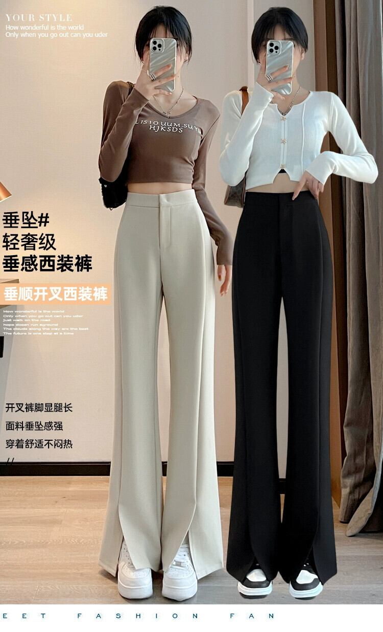 プラスサイズの婦人服 2023 ファットシスター秋の新スタイルのスリットスーツパンツハイウエストナローバージョンワイドレッグわずかにフレアのフロアモップパンツ ハイウェスト レッド 大きめサイズ オータム 秋物 ワイドパンツ 8884127568625899