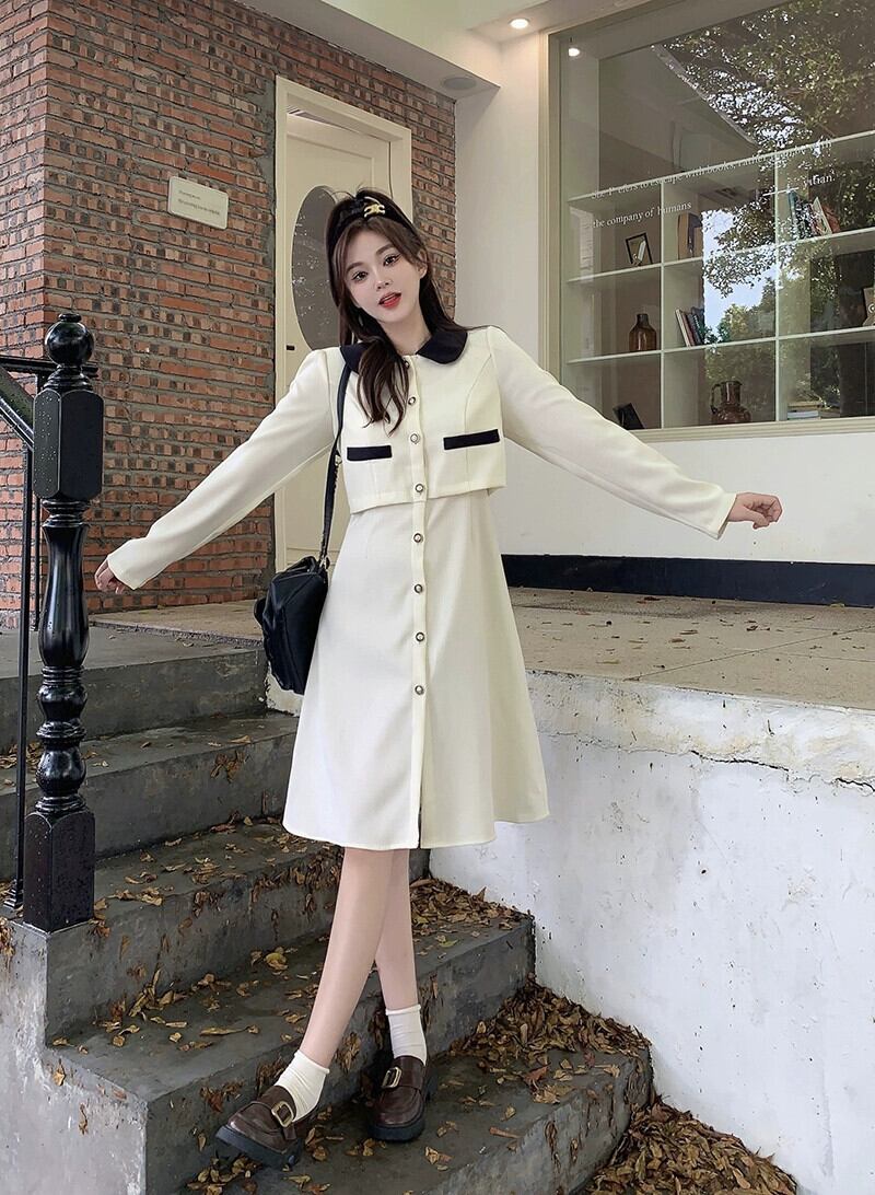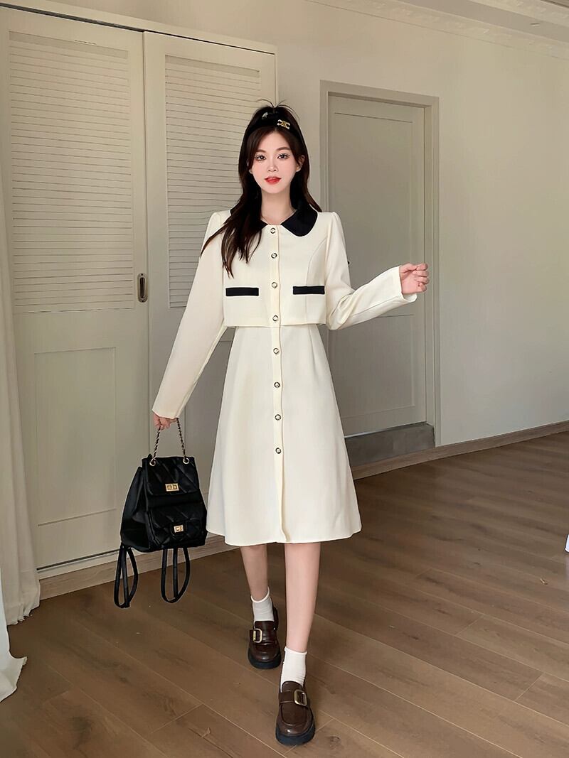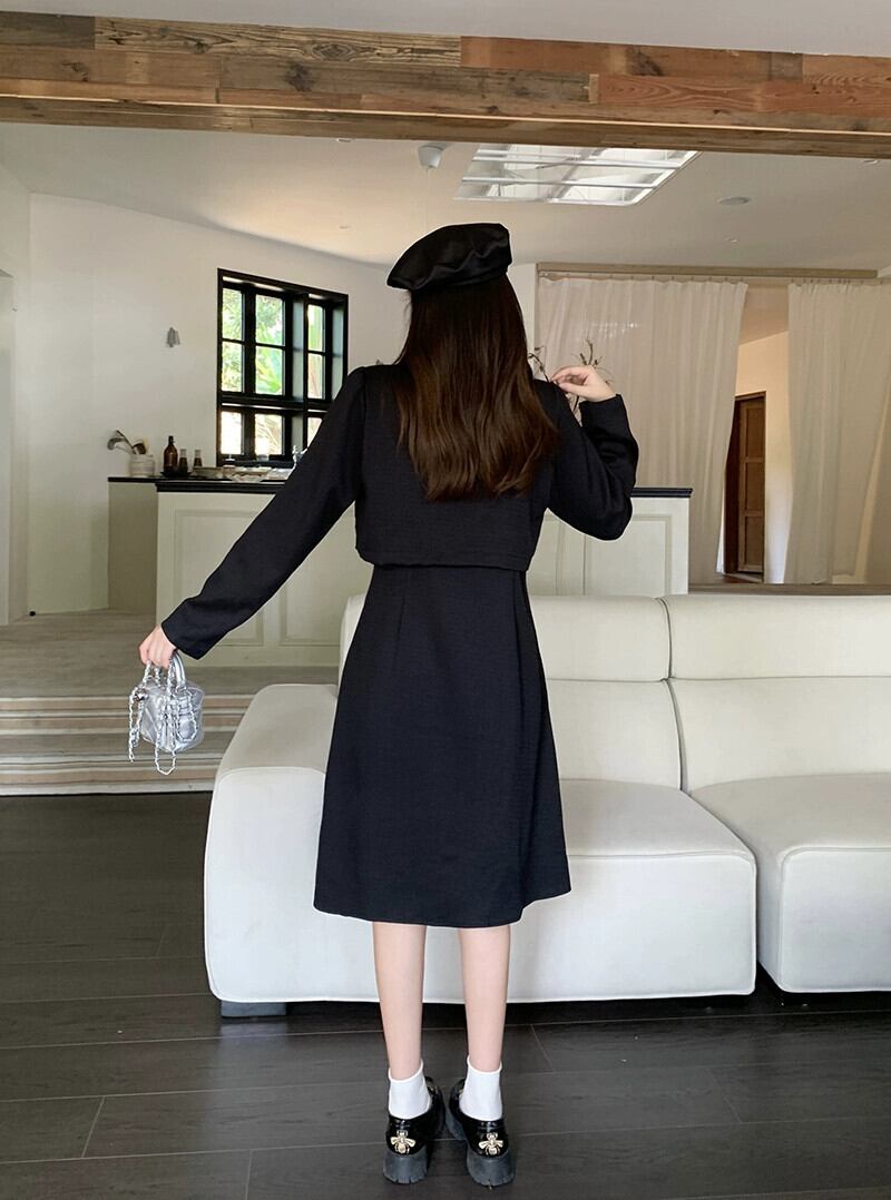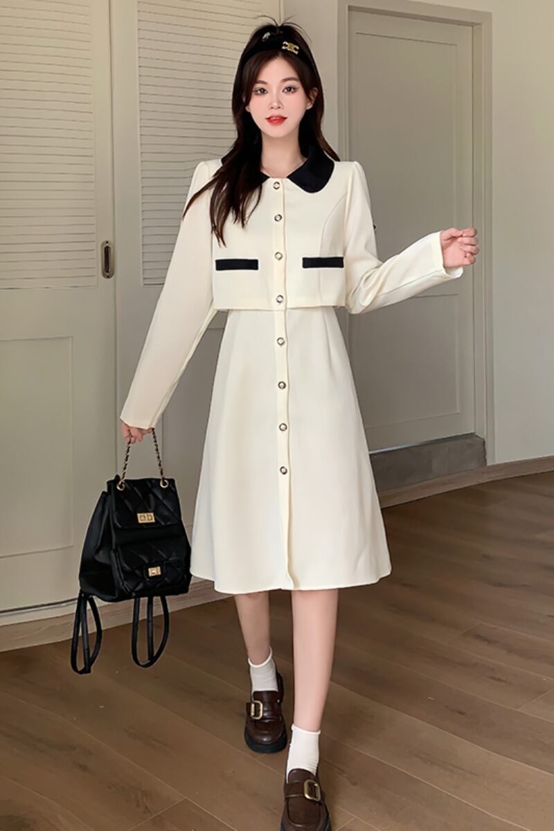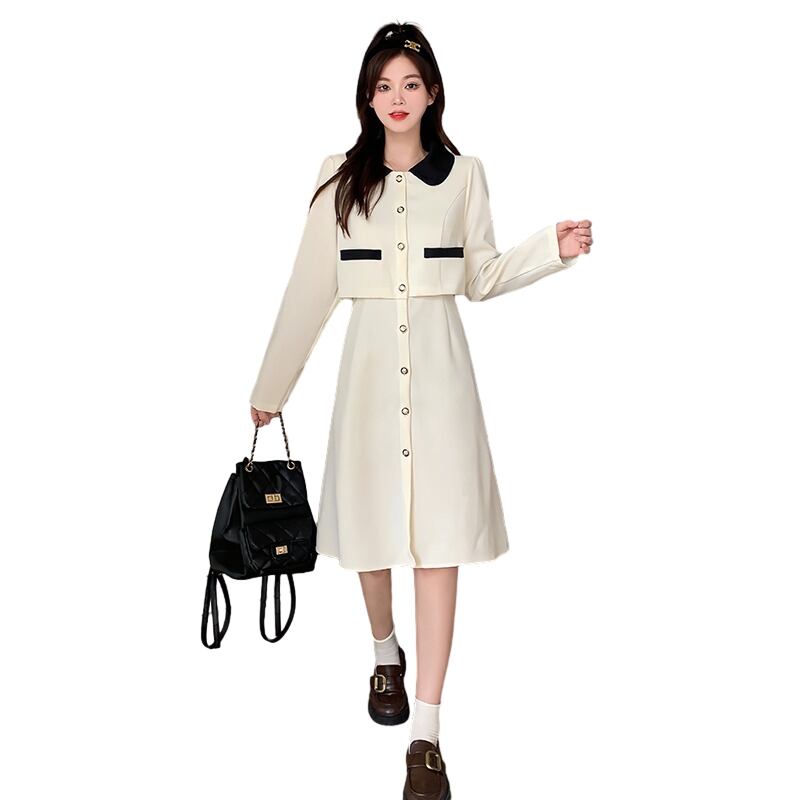 プラスサイズの婦人服 2023 流行の秋の新しいファットシスターファッショナブルなフレンチミッドレングススカート痩身偽ツーピースドレス 大きめサイズ オータム 秋物 8884122696547504