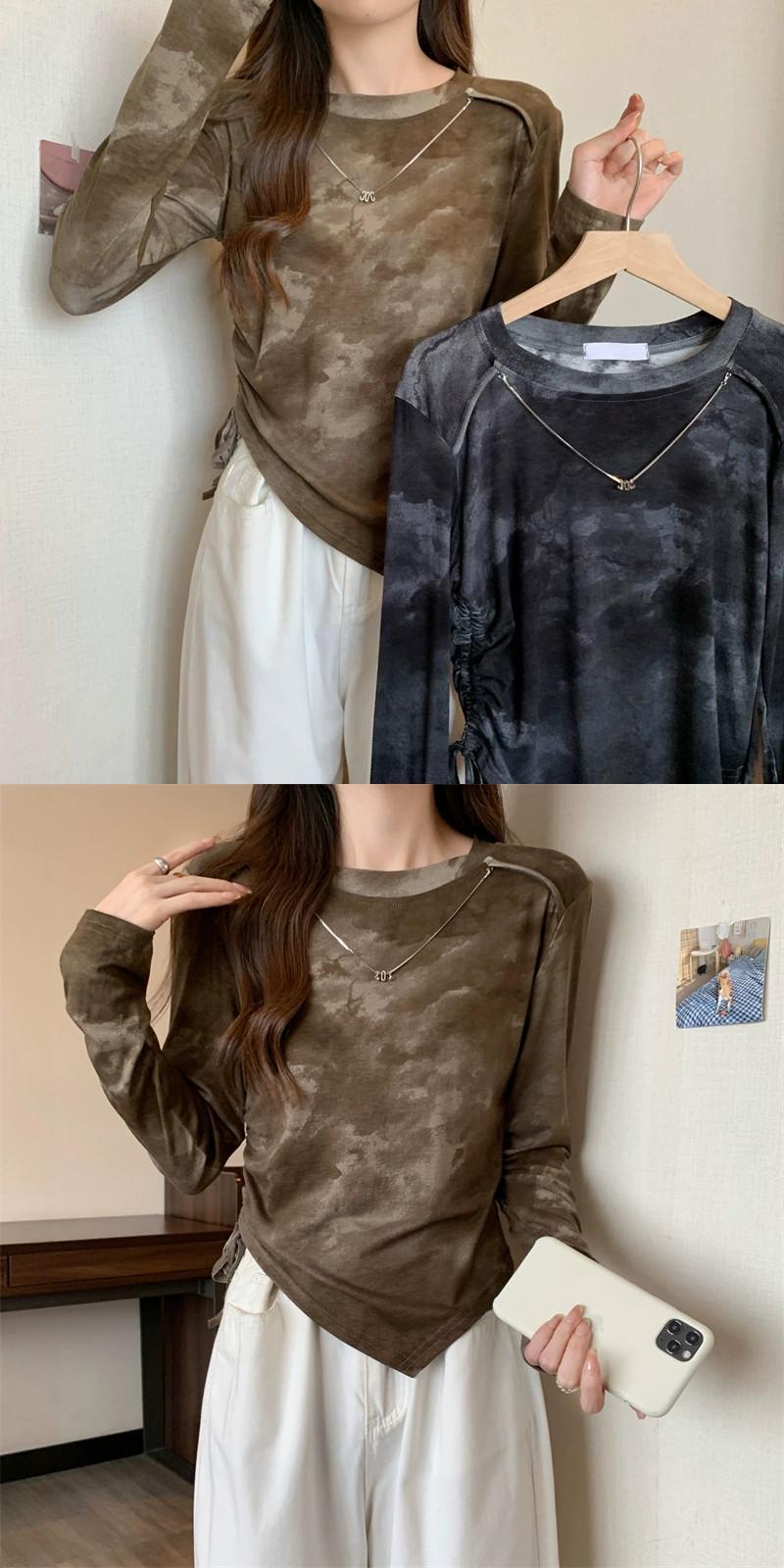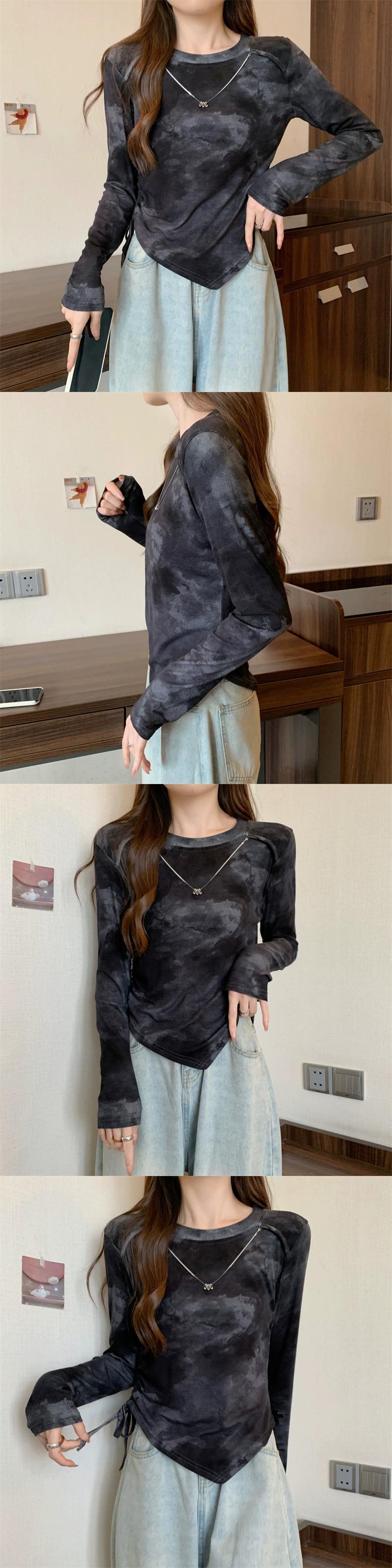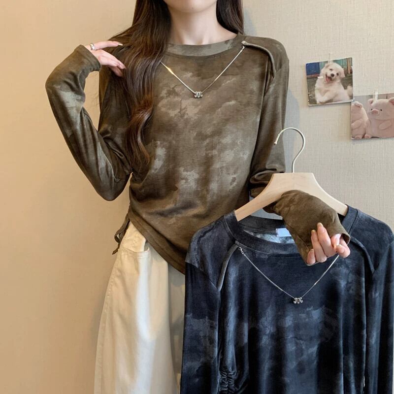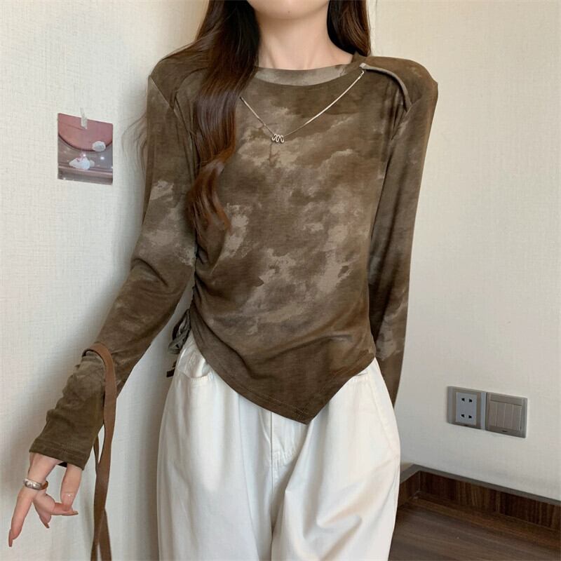 プラスサイズの婦人服ファット mm 初秋の新しいスタイルのスタイル巾着不規則な絞り染めトップス多目的痩身インナー レイヤリング シャツ 大きめサイズ オータム 秋物 8884155193833304