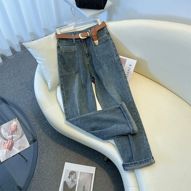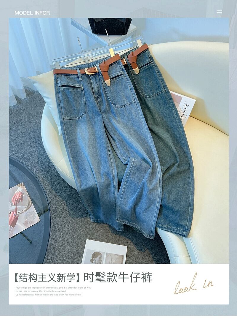 プラスサイズの女性の 2023 秋の新スタイルファット mm ウエスタンスタイル年齢軽減ジーンズルーズ痩身ワイドレッグパンツ 大きめサイズ オータム 秋物 ワイドパンツ 8884161656173926