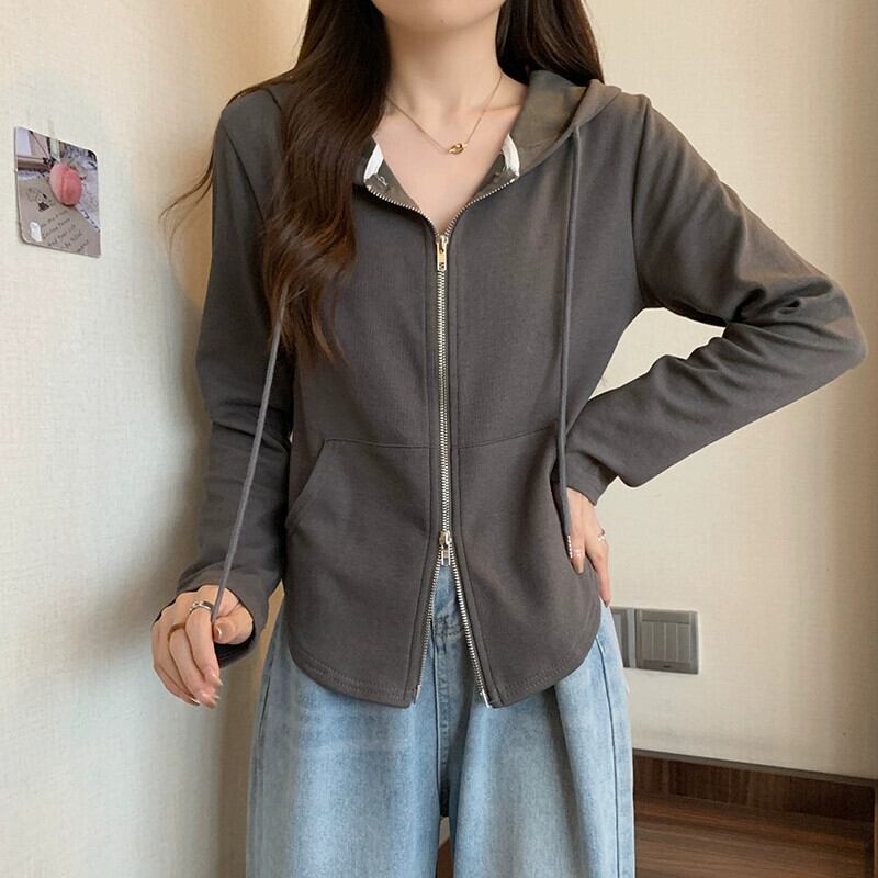 プラスサイズの婦人服ファット mm 秋のファッションカジュアルで多用途な痩身フード付きカーディガン長袖カーディガンスウェットシャツトップ ロング 大きめサイズ オータム 秋物 8884112568704452