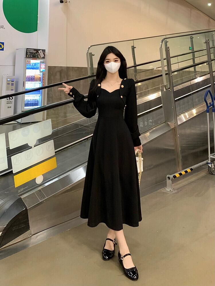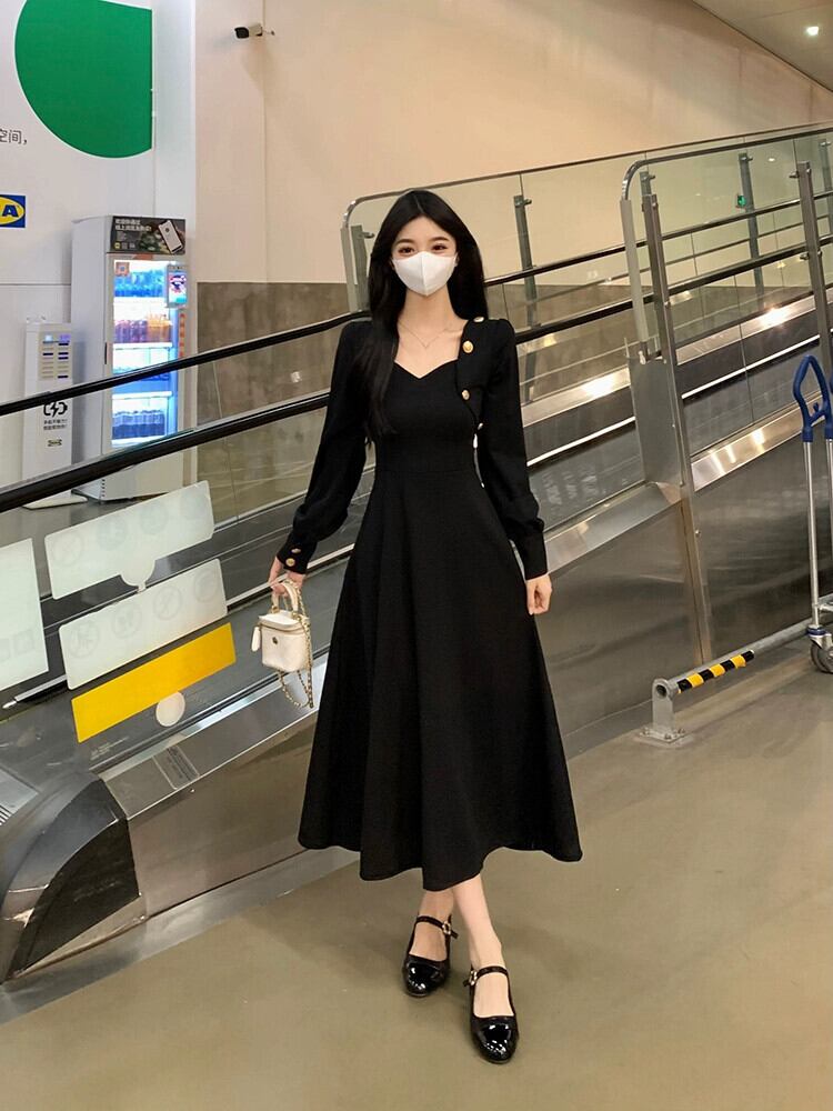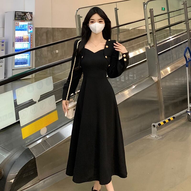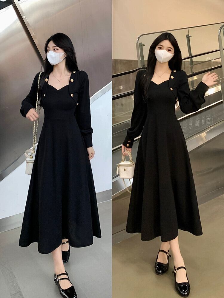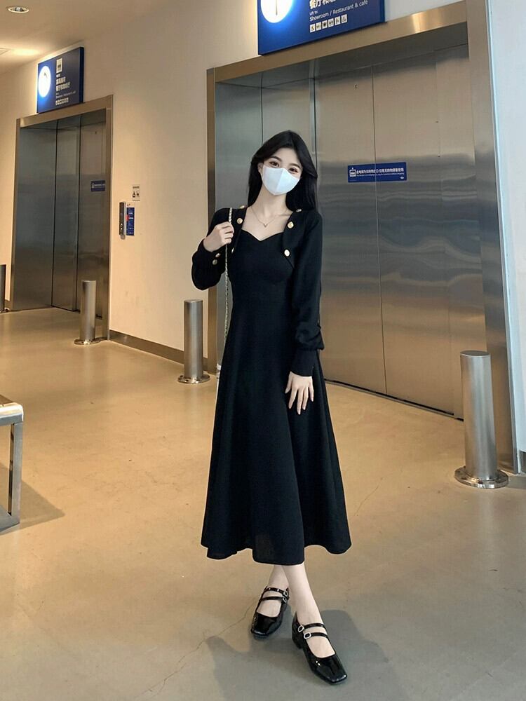 プラスサイズの女性の脂肪 mm デザインハイウエスト痩身黒ニットドレス秋のファッション年齢を減らすスカート ハイウェスト ブラック 大きめサイズ オータム 秋物 8884184156033008