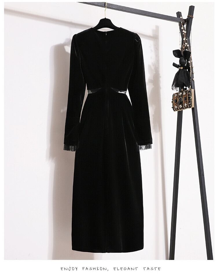 プラスサイズの婦人服 2023 脂肪姉妹秋の新しい気質フランスのティーブレイクキキョウレーススプライシングロングスカートドレス 大きめサイズ オータム 秋物 8884125917818109