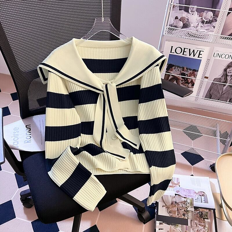 プラスサイズの女性の脂肪 mm プルオーバーアウタートップス秋の新 2023 デザインストライプ腹カバースタイルセーター 大きめサイズ オータム 秋物 8884187201770878