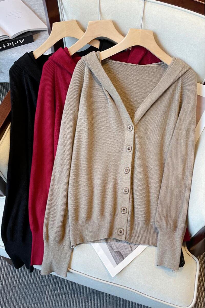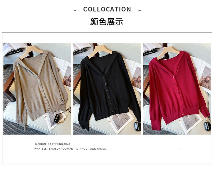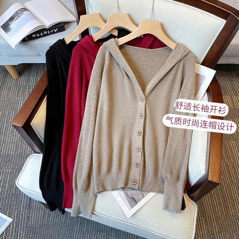 プラスサイズの婦人服 2023 ファットシスター秋の新ルーズバットスリーブは腹をカバーし、痩身ニットフード付きカーディガンジャケット 大きめサイズ オータム 秋物 8884170783524437