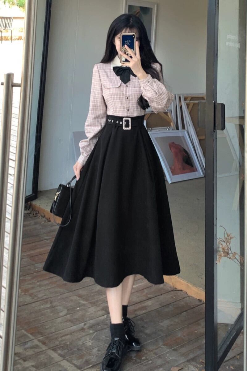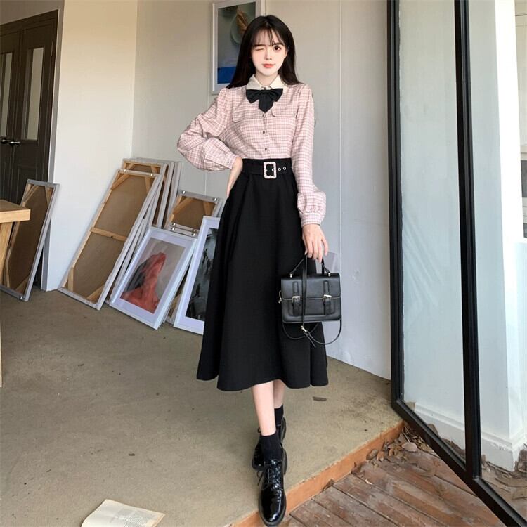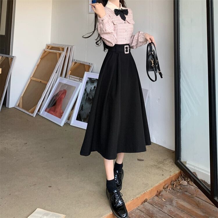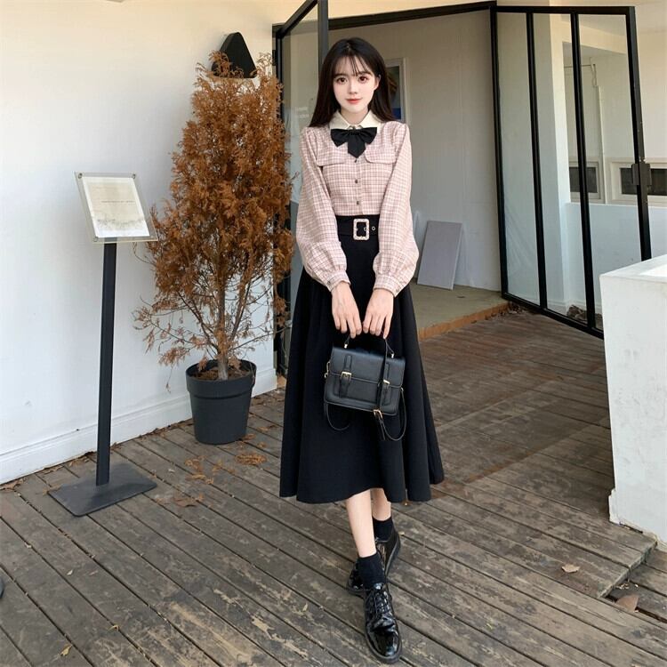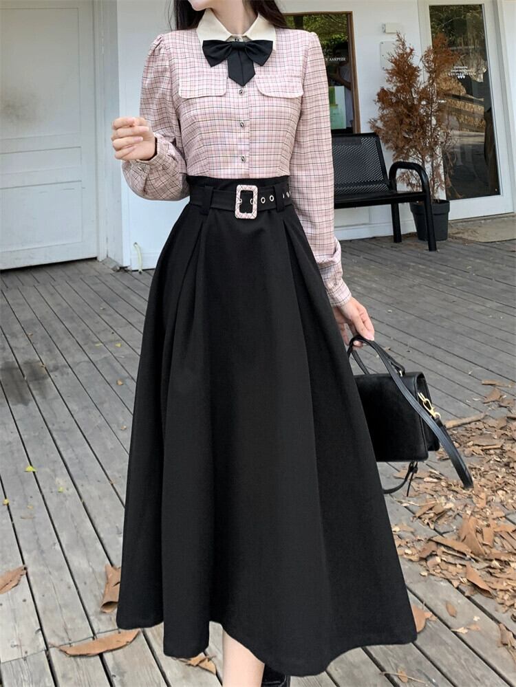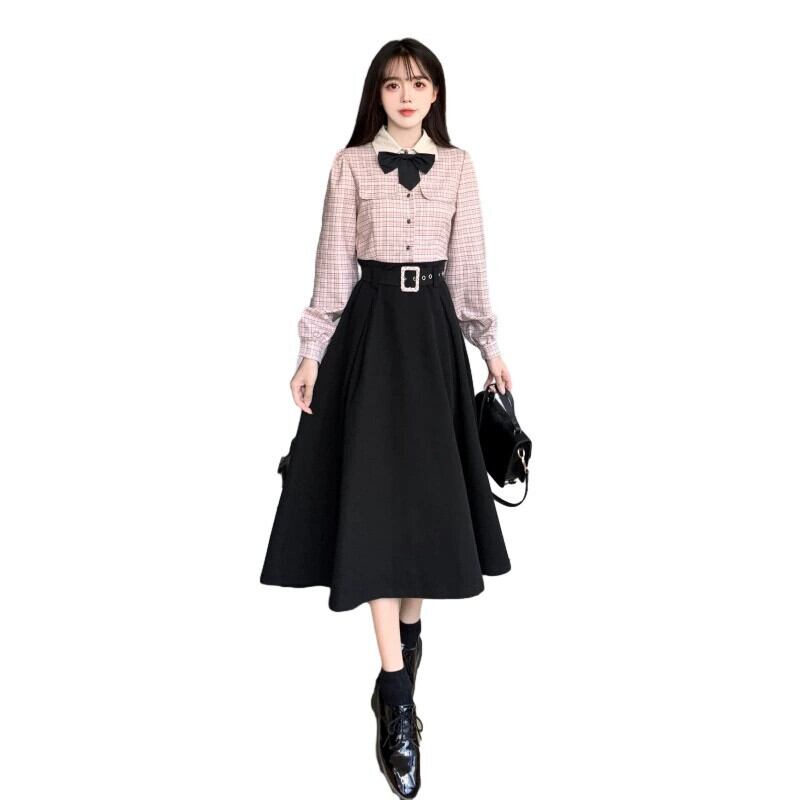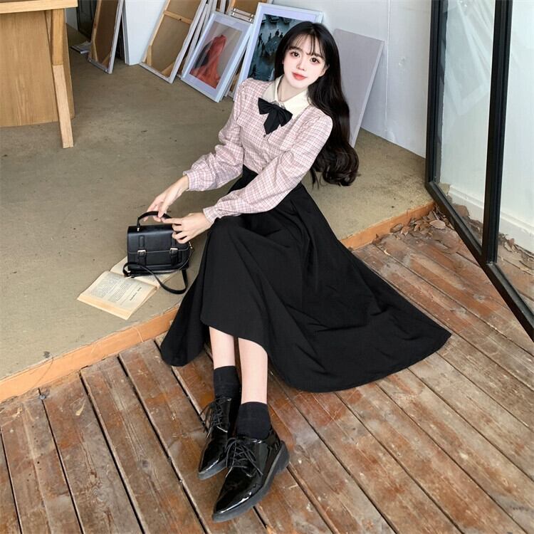 プラスサイズの婦人服 2023 トレンディな秋の新しいファットシスターフェイクツーピーススプライシングチェック柄 A ラインスカートハイエンドスリムドレス 大きめサイズ オータム 秋物 Aライン 8884143598166138