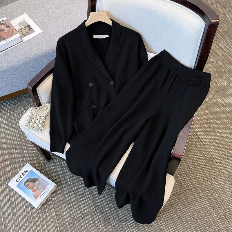 プラスサイズの婦人服ファット初秋2023新しい万能スーツ年齢軽減と痩身トップスカジュアルワイドレッグパンツ2点セット 大きめサイズ オータム 秋物 8884185817430305