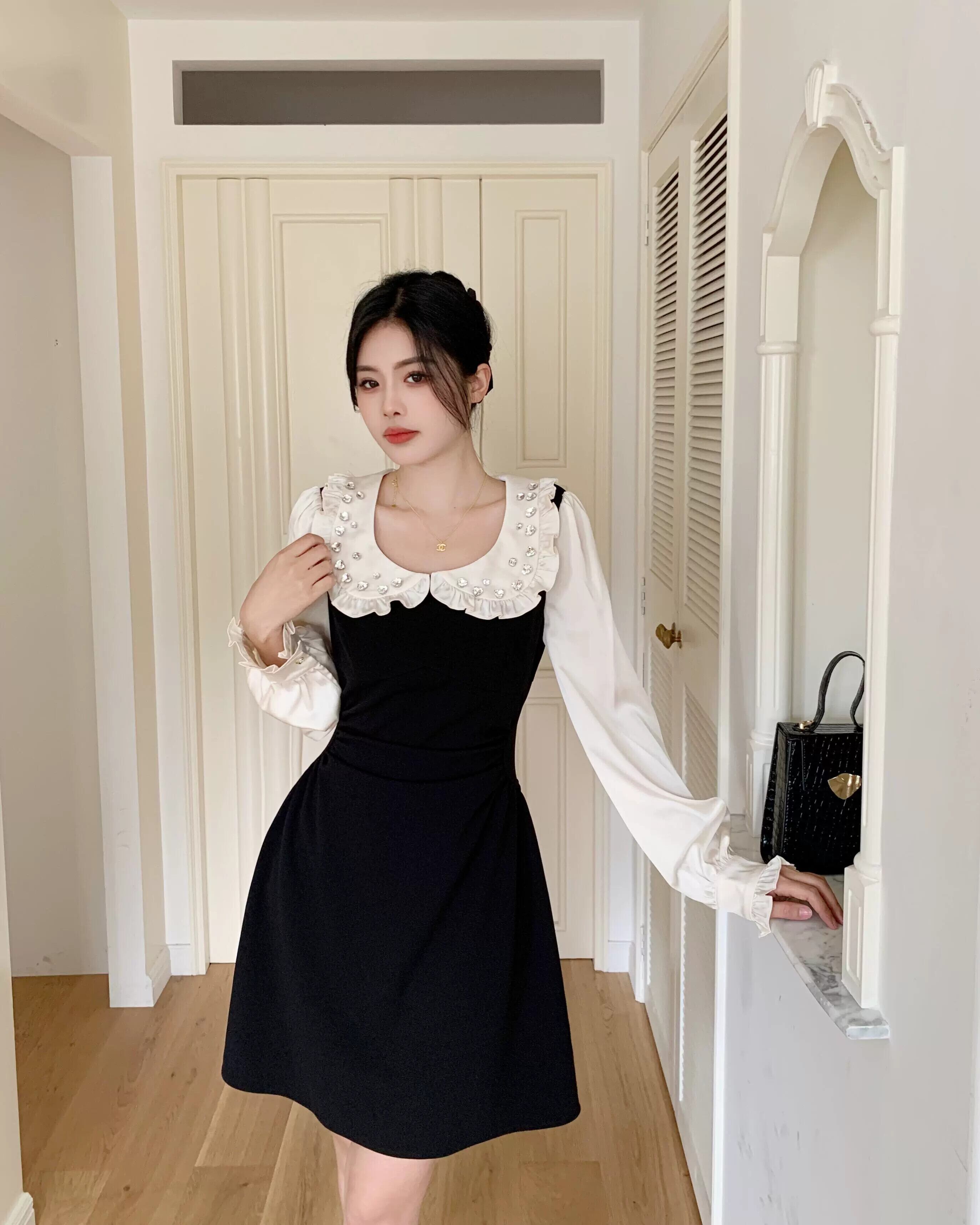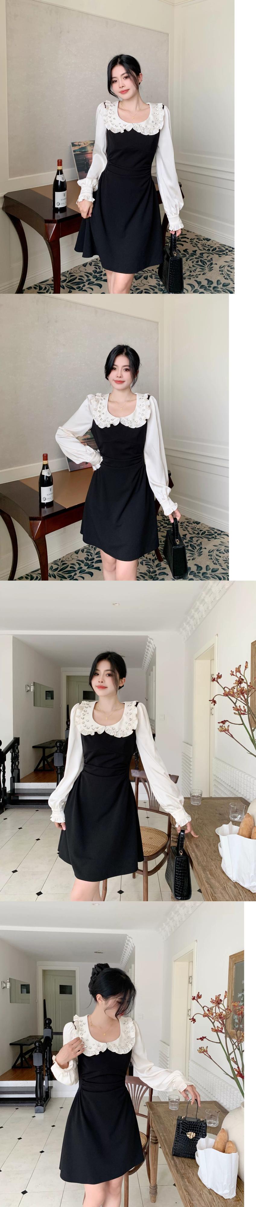 プラスサイズの婦人服 2023 脂肪姉妹秋の新スタイルの気質プリーツ a ラインスカート重工業ダイヤモンド人形襟ドレス 大きめサイズ オータム 秋物 Aライン 8884143759394579