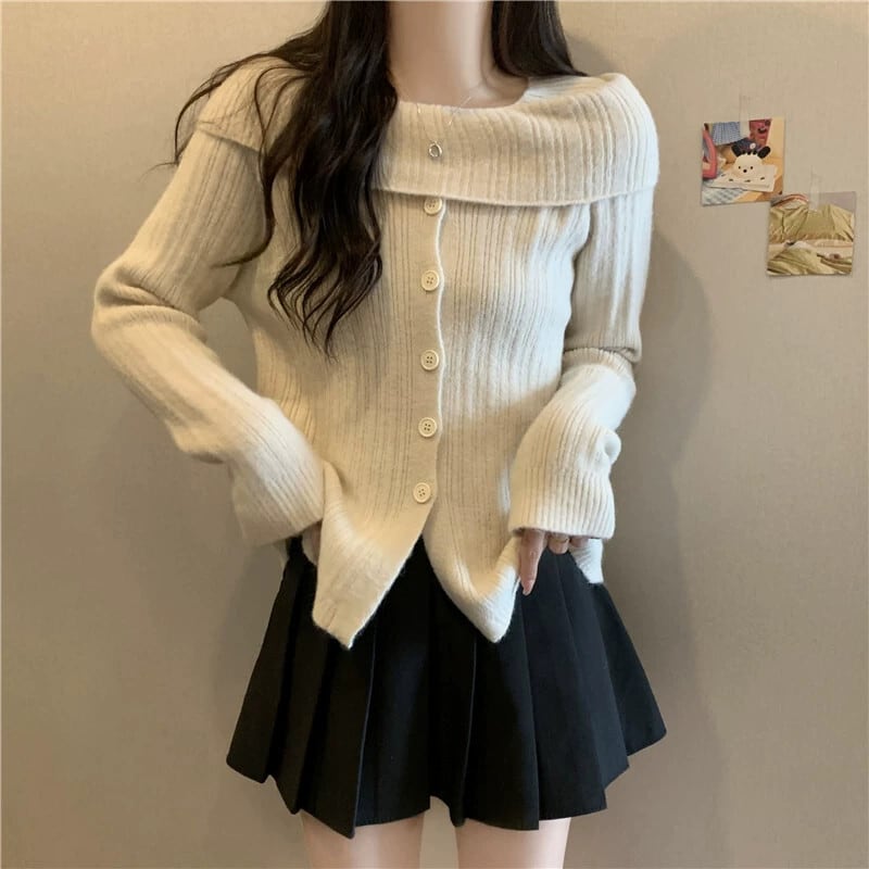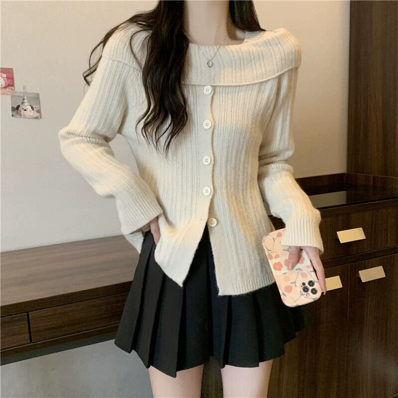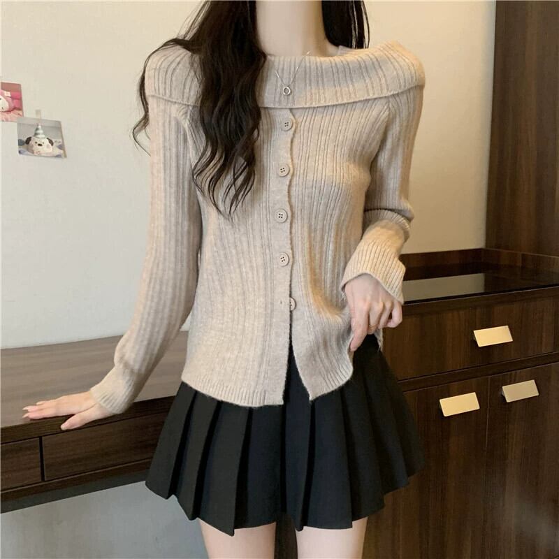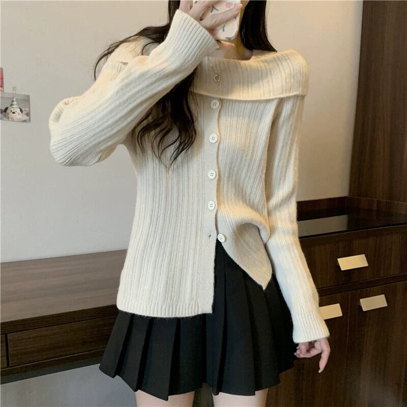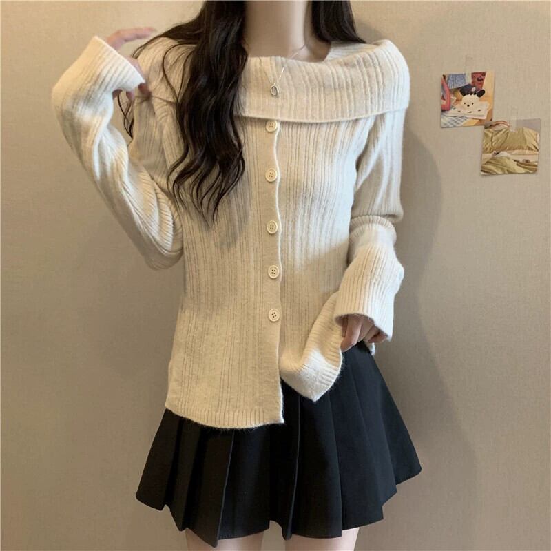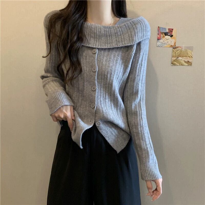 プラスサイズの女性の 2023 新しい秋スタイルファットシスターワンライン襟ニッチデザインセータースリミングオフショルダートップ 大きめサイズ オータム 秋物 8884134261932561